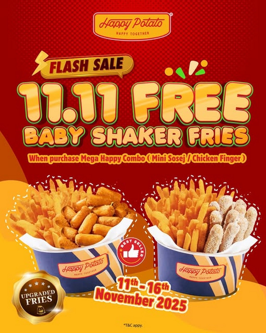 For anyone looking to enjoy a tasty, affordable, and fun snack, Happy Potato’s 11.11 Flash Sale is an ideal choice. Don’t wait too long—these deals are only available while supplies last, and with the popularity of both the Mega Happy Combo and the Baby Shaker Fries, outlets are likely to see a rush of enthusiastic snackers. Make it a point to visit between 11th and 16th November 2025, treat yourself to a combo, and savour the extra flavour that comes with the free Baby Shaker Fries.