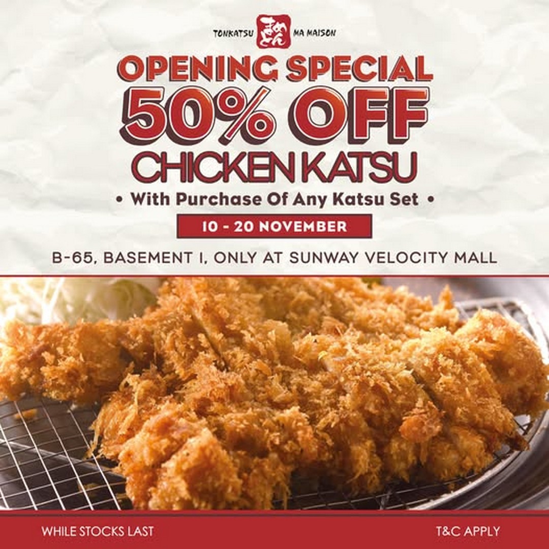 From 10 to 20 November 2025, Tonkatsu by Ma Maison at Sunway Velocity Mall is turning up the excitement with its Opening Wave Continues promotion. Diners who purchase any Katsu Set can enjoy 50% off a Chicken Katsu Set, making this the perfect opportunity to indulge in a hearty Japanese meal without straining the wallet.