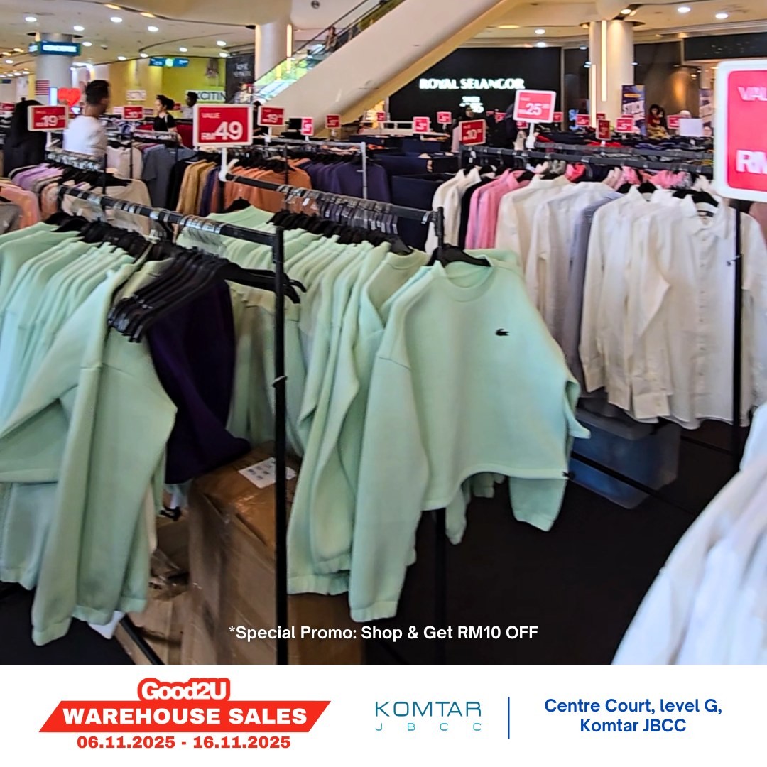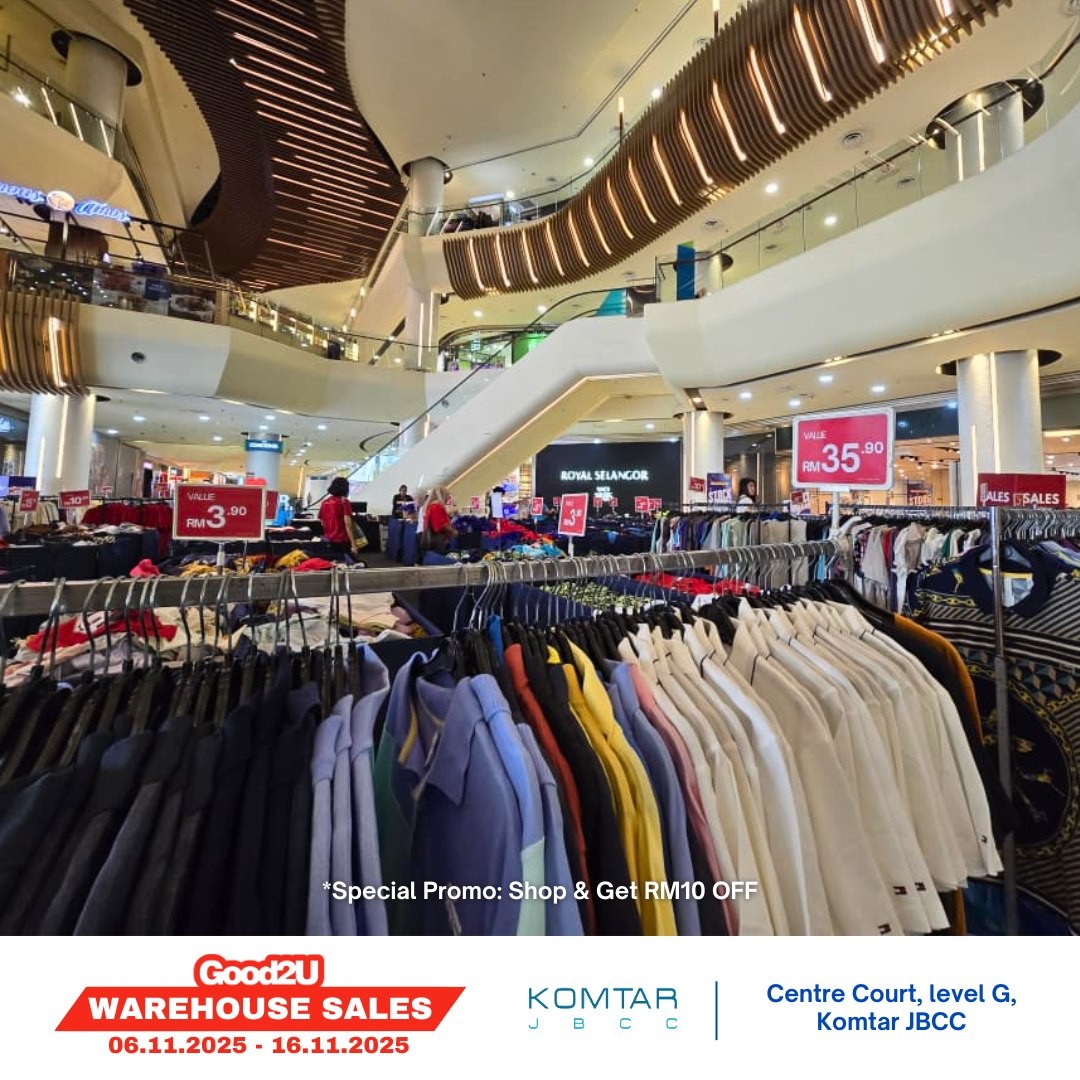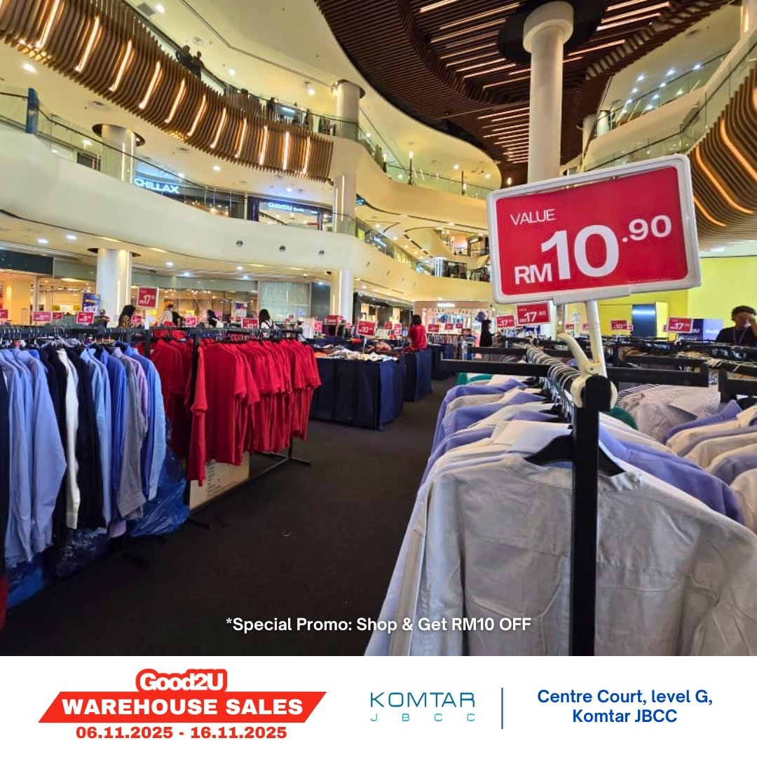 In summary, the Good2U Warehouse Sale at KOMTAR JBCC is more than just a sale — it’s a shopping experience that combines variety, affordability, convenience, and excitement. Whether you are a fashion enthusiast, a parent, or someone simply seeking good deals, this sale offers something for everyone. With daily operating hours from 10:00 AM to 10:00 PM, there’s ample opportunity to plan your visit, explore the collections, and secure the best bargains. Those who attend early will particularly benefit from the best selections and avoid missing out on popular sizes.