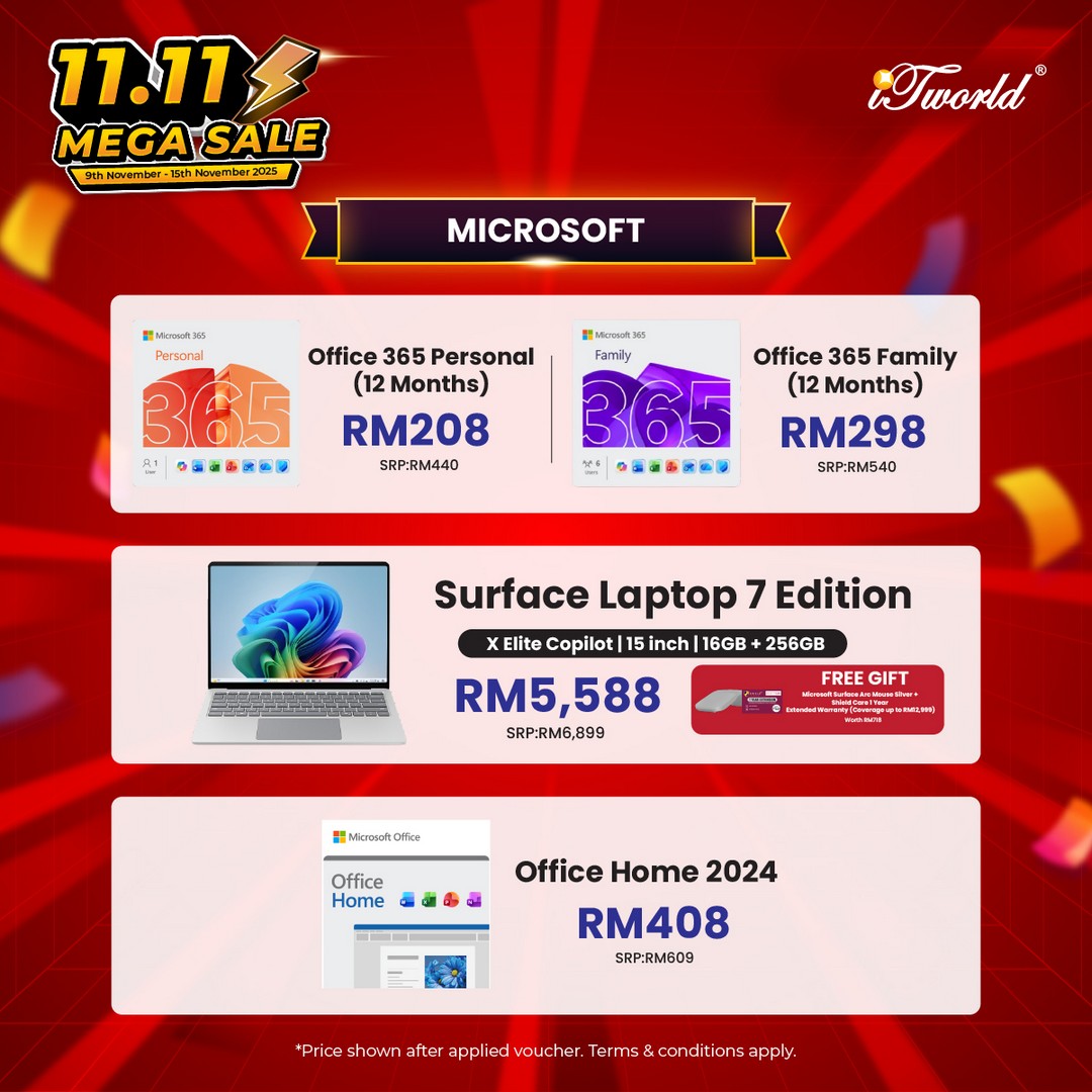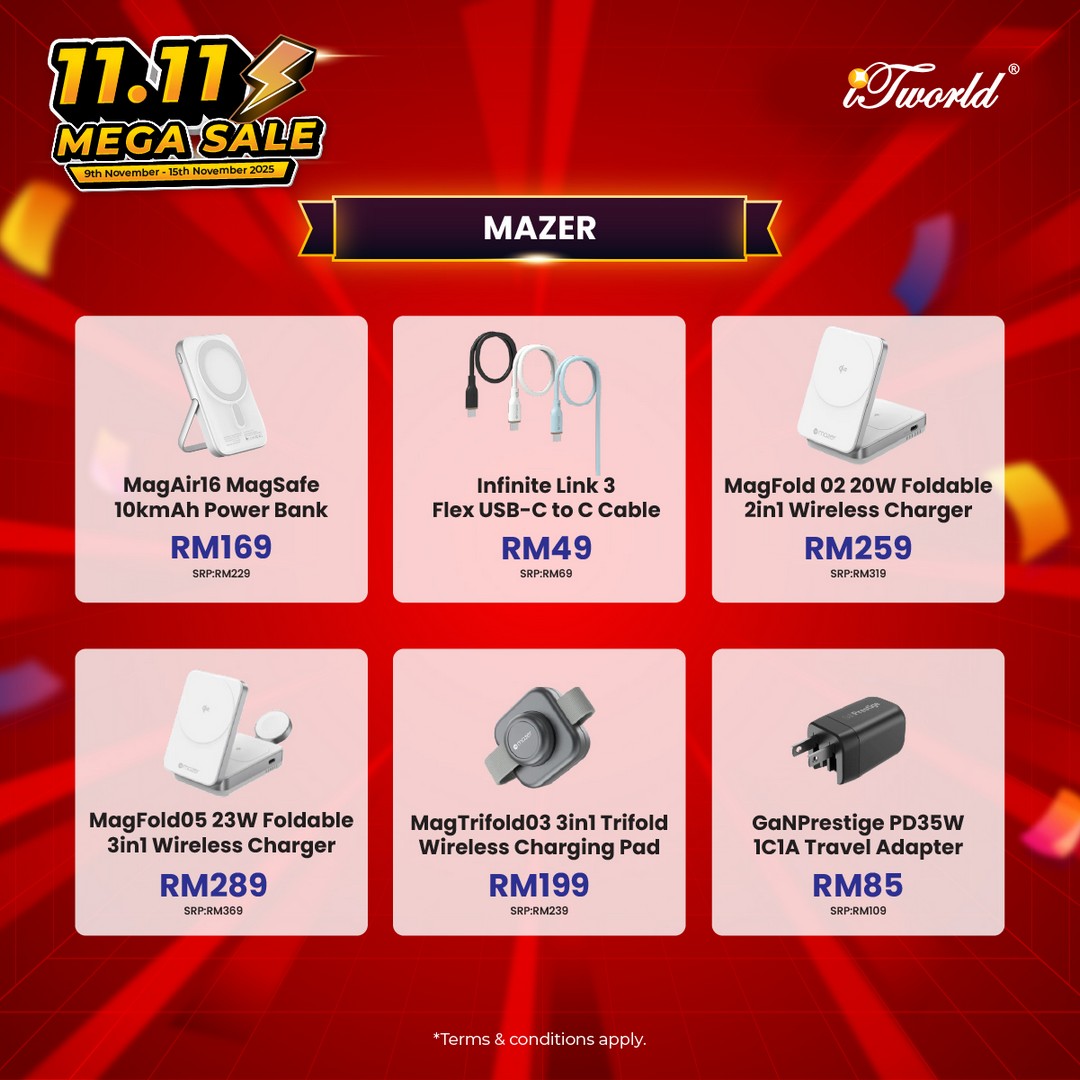 In conclusion, iTworld’s 11.11 Mega Sale is more than just a sale — it’s an event designed to empower shoppers with high-quality technology at prices that are rarely seen. With generous discounts, exciting bundle offers, vouchers, free delivery, and loyalty perks, this is the ideal time to upgrade gadgets, secure gifts, or simply indulge in some smart tech shopping. For anyone in Malaysia looking for value, variety, and convenience, this promotion ticks all the boxes. Don’t miss the chance to grab premium tech at irresistible prices — make the most of iTworld’s 11.11 Mega Sale before it ends on 15 November 2025.