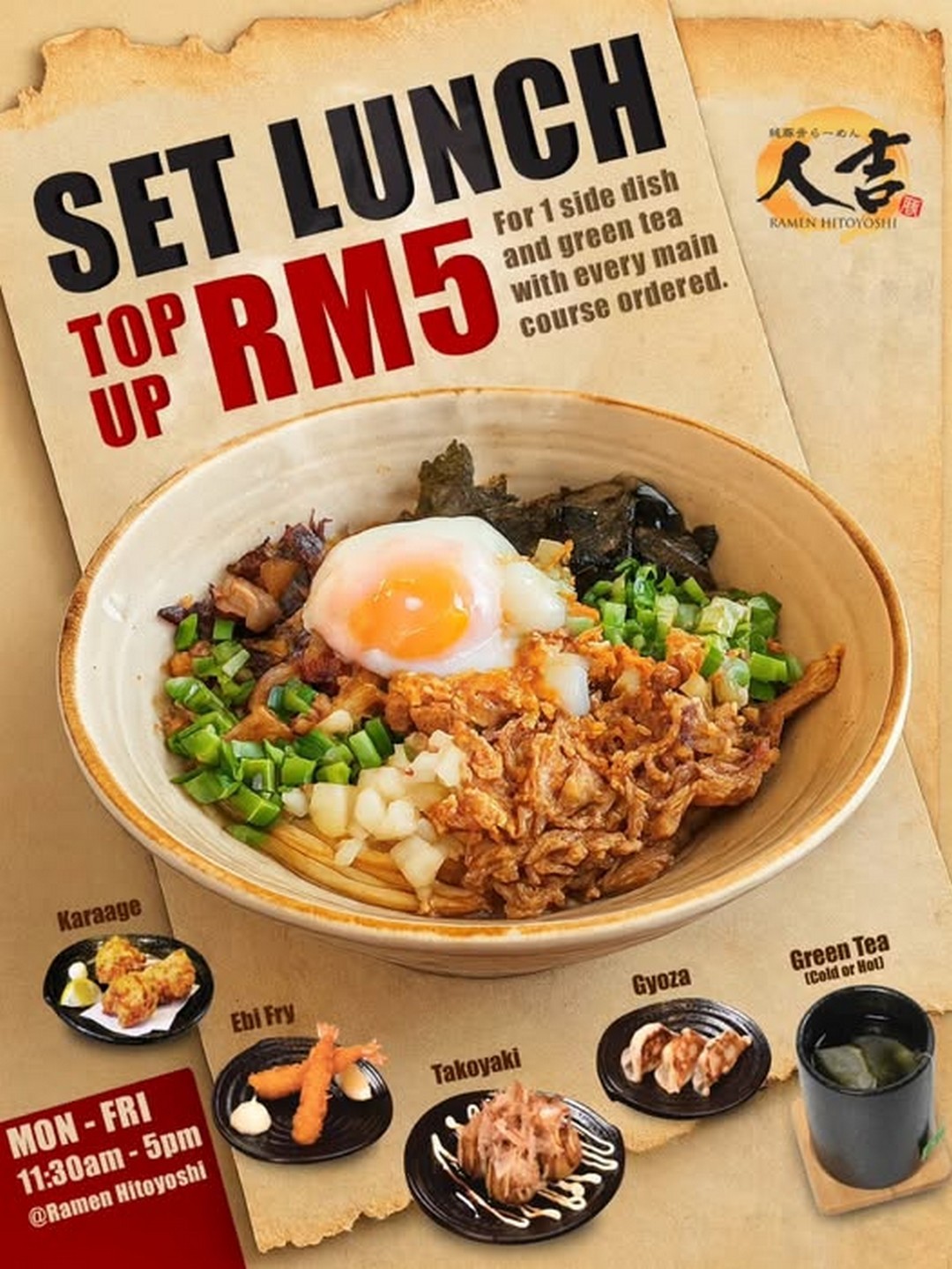 To learn more about this promotion or explore their full menu, you can check out their official Facebook post here: Ramen Hitoyoshi Malaysia Lunch Deal Details.