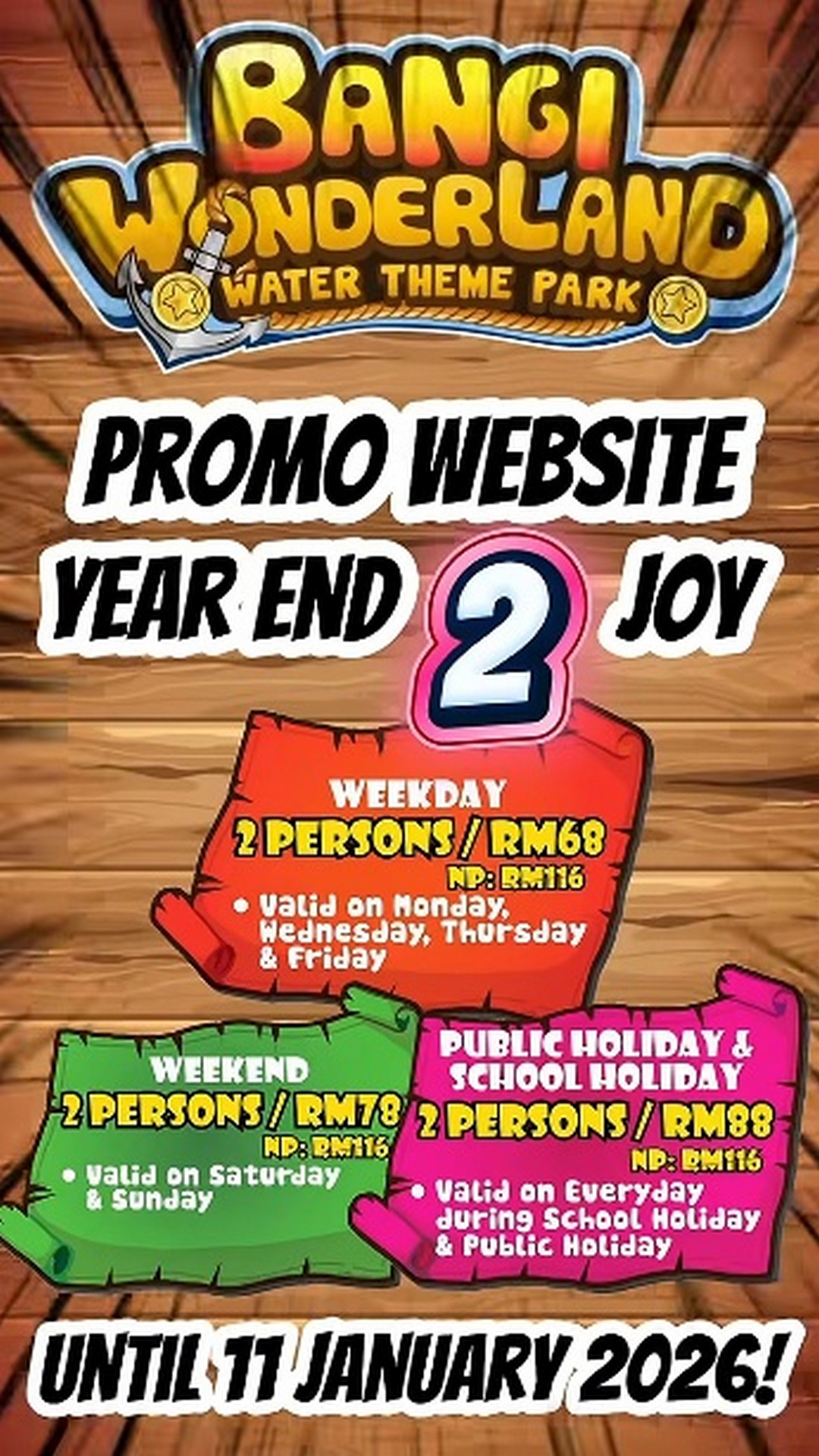 Bangi Wonderland, one of Malaysia’s premier water parks, is turning the year-end into a celebration of fun and excitement with their latest Year-End 2 Joy promotion. For a limited time, visitors can enjoy a special rate starting from just RM 68 for 2 people. This is not just a ticket deal—it’s an opportunity for families, friends, and even couples to experience the thrill of Malaysia’s most popular water attractions at a fraction of the usual cost.