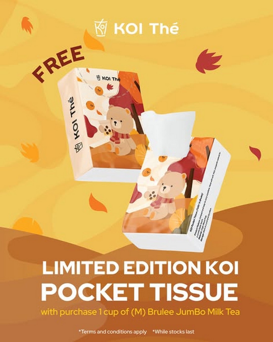 But that’s not all. Every purchase of a Medium Brulee Jumbo Milk Tea comes with a FREE Limited Edition KOI Pocket Tissue, while stocks last. It’s a small gift but adds a touch of charm to your visit, perfect for those who love collecting exclusive items or just appreciate a thoughtful bonus.