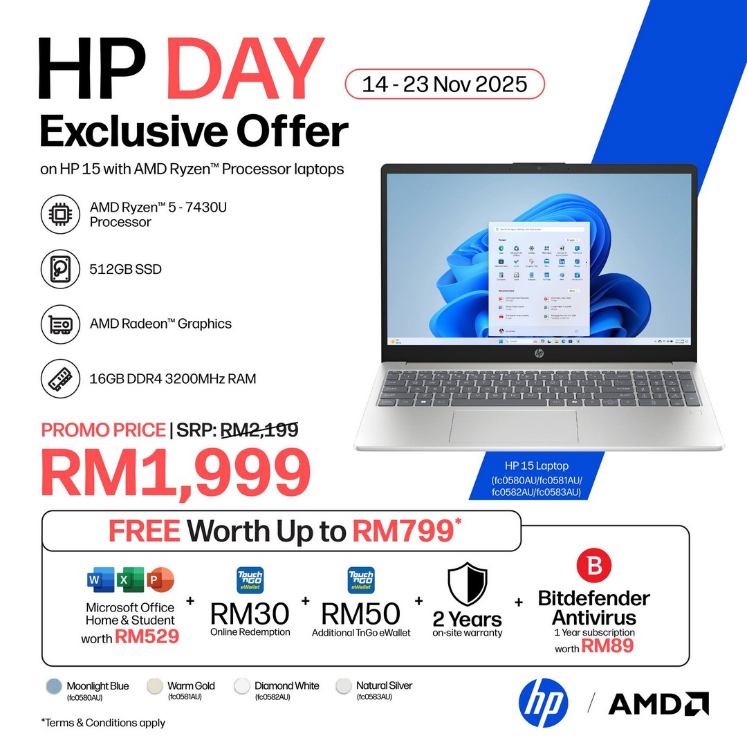 Selected HP laptops are offered at discounts of up to RM200. With technology prices steadily increasing, this is a rare opportunity to upgrade to a high-performance laptop without straining your wallet. Whether it’s for personal use, professional work, or academic purposes, these discounts make premium HP devices far more accessible. For instance, students or remote workers looking for reliable machines can benefit significantly from this promotion. -