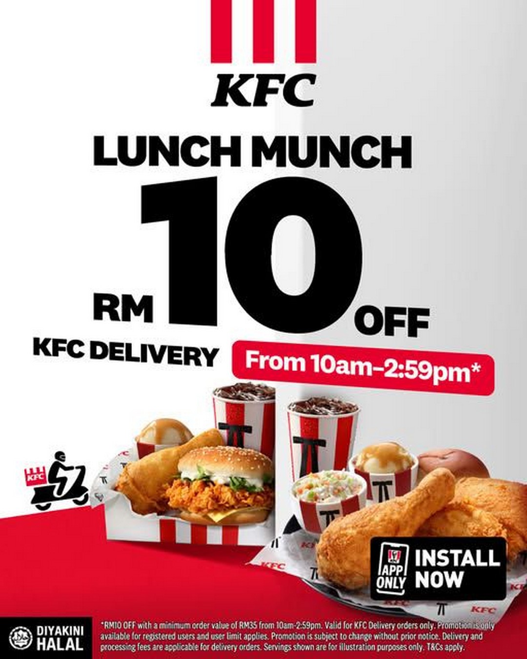Don’t miss the chance to enjoy this app-exclusive deal. Open the KFC App, place your delivery order, and claim your RM10 discount on a minimum spend of RM35 today. Treat yourself, save some ringgit, and enjoy a hassle-free lunch that hits all the right notes.