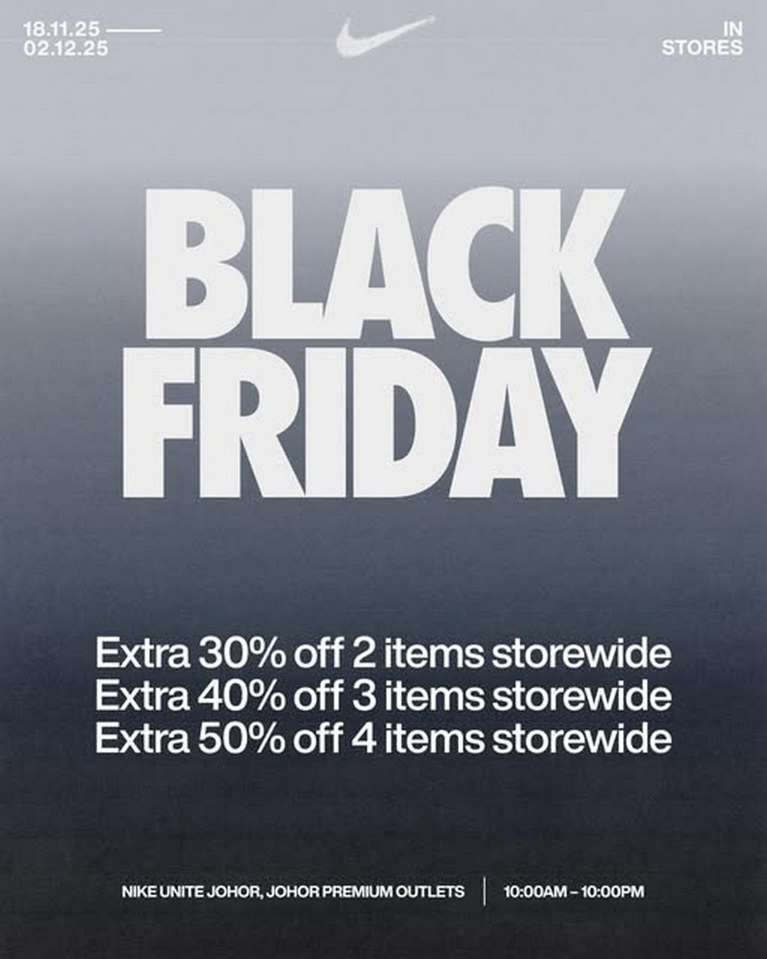 If you’ve been on the lookout for the perfect time to refresh your sportswear collection, Nike Unite at Johor Premium Outlets has a deal that’s hard to resist. From 18 November to 2 December 2025, shoppers can enjoy a special promotion that gives you additional savings across the store depending on how many selected items you choose to buy.