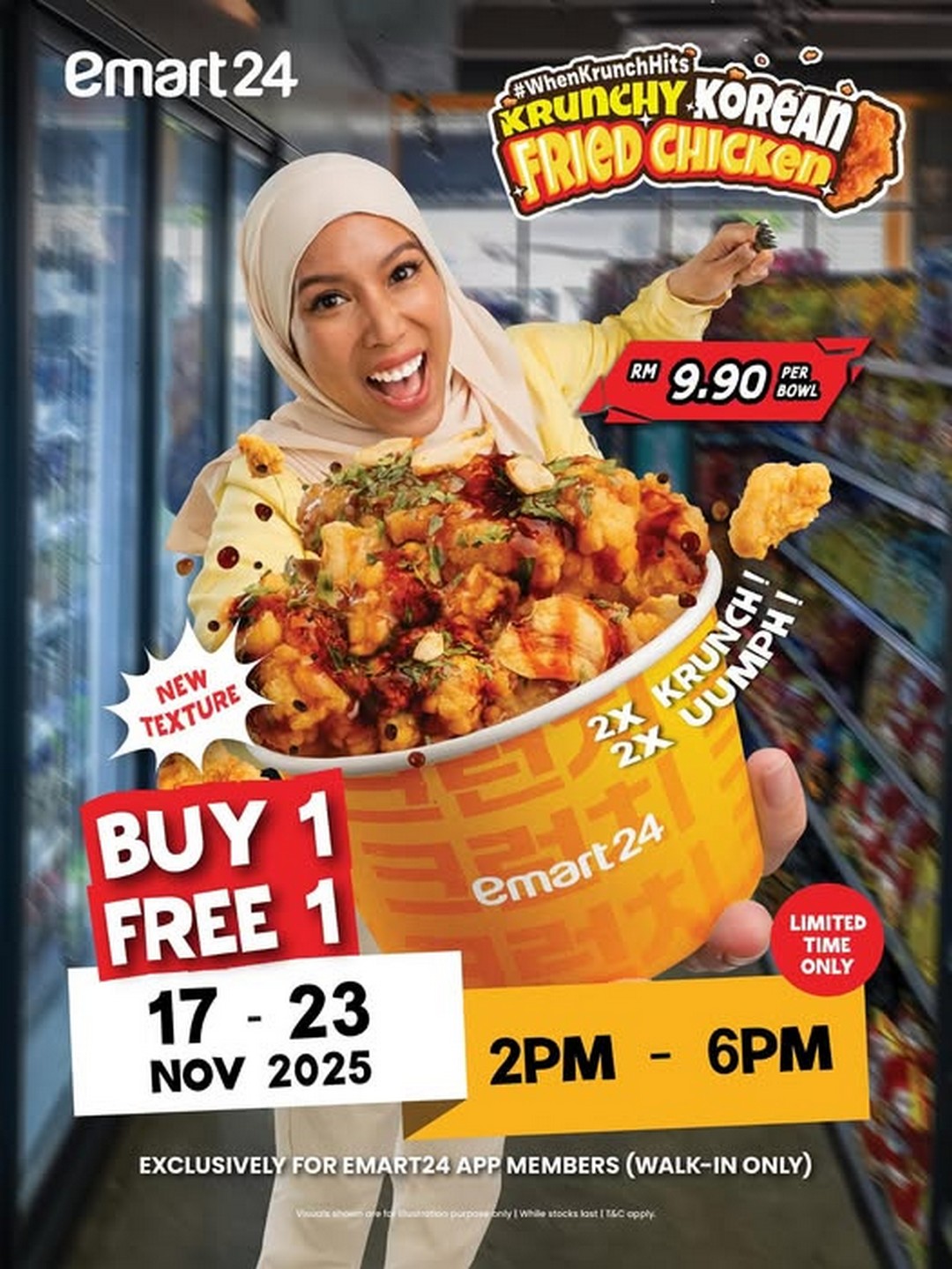 If there is one thing Malaysians never get tired of talking about, it is food. Good food, affordable food, and especially promotional food. Whenever a brand drops a limited-time deal, people naturally rush to find out if the offer is worth their time and money. For those who enjoy Korean street-style snacks and crispy fried chicken, emart24 Malaysia is rolling out a promotion that is quite difficult to ignore. From 17 to 23 November 2025, they are offering a BUY 1 FREE 1 deal on their brand-new Krunchy Korean Fried Chicken, exclusively for emart24 app members, and only available between 2PM and 6PM. It is exactly the kind of deal that gets Malaysians excited, mostly because the savings are obvious and the enjoyment is guaranteed.