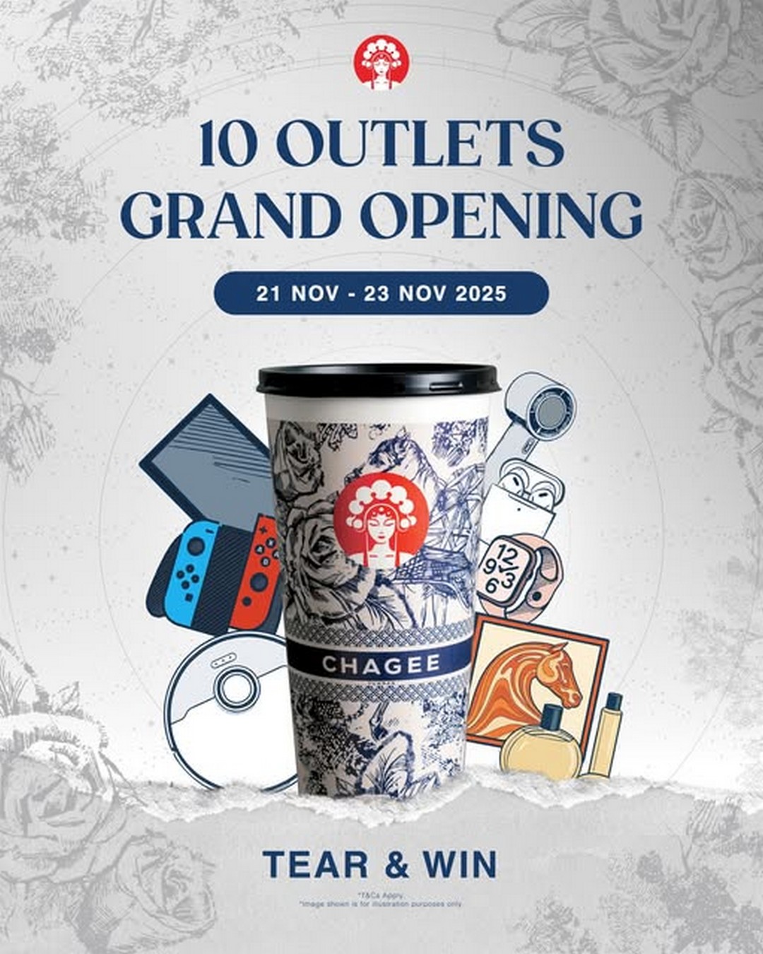 Mark your calendars for 21st to 23rd November 2025, gather your friends, and head to your nearest CHAGEE outlet to celebrate, sip, and enjoy the rewards that come with every cup. From the thrill of the Tear & Win to the pure enjoyment of premium tea, this is one Grand Opening that promises excitement for all who attend.