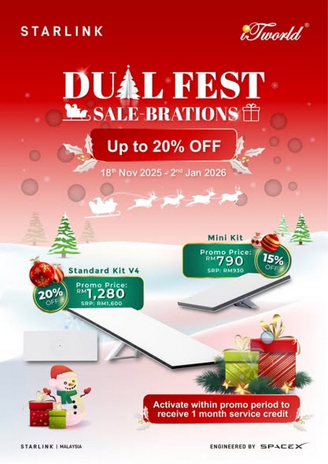 Malaysia, get ready to elevate your internet experience this festive season! iTworld has just launched their STARLINK Dual Fest Sale, running from 18 November 2025 to 2 January 2026, offering an exciting opportunity to grab SpaceX’s Starlink kits at discounted prices. For anyone seeking faster, more reliable connectivity at home, in the office, or even at a remote location, this promotion couldn’t come at a better time.