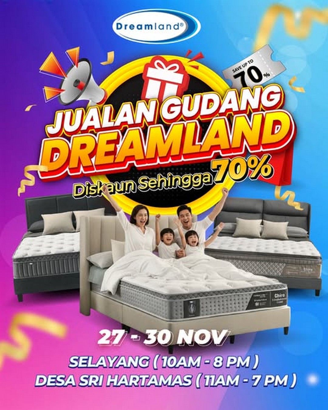 Whether they’re upgrading their bedroom, seeking a thoughtful gift for a loved one, or simply hunting for the best bargain, Dreamland’s Warehouse Sale has something for everyone. With four days of incredible discounts, special promotions, and a chance to explore a wide range of sleep solutions, it’s easy to see why this event is not to be missed. Marking the calendar for 27 to 30 November 2025 and heading to Selayang or Sri Hartamas Village ensures they will leave with both satisfaction and significant savings.