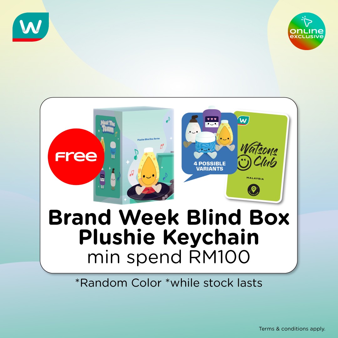 FREE Brand Week Blind Box Plushie Keychain with a minimum spend of RM100. Each keychain comes in a random colour, making it a delightful surprise for shoppers who love collectibles.