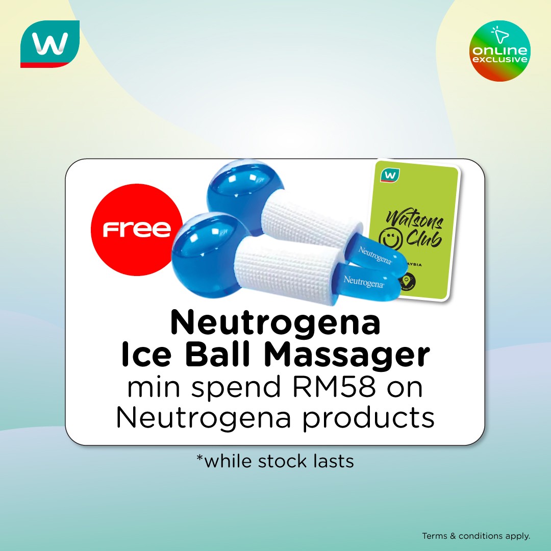 FREE Neutrogena Ice Ball Massager with a minimum spend of RM58 on Neutrogena products, ideal for a little self-care routine at home.
