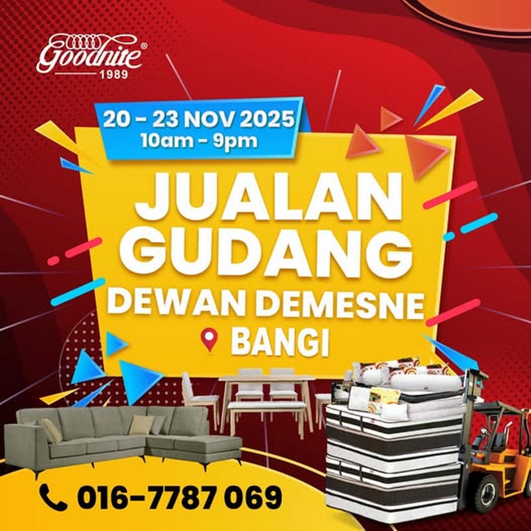 In conclusion, the Goodnite Jualan Gudang from 20th to 23rd November 2025 is a must-visit event for anyone who values comfort, quality, and smart shopping. With great deals on mattresses, sofas, bedding essentials, and cleaning services, this sale is perfect for improving your home’s comfort while enjoying excellent savings. Don’t miss out on the chance to experience better sleep, a more stylish living space, and fantastic bargains, all in one visit.