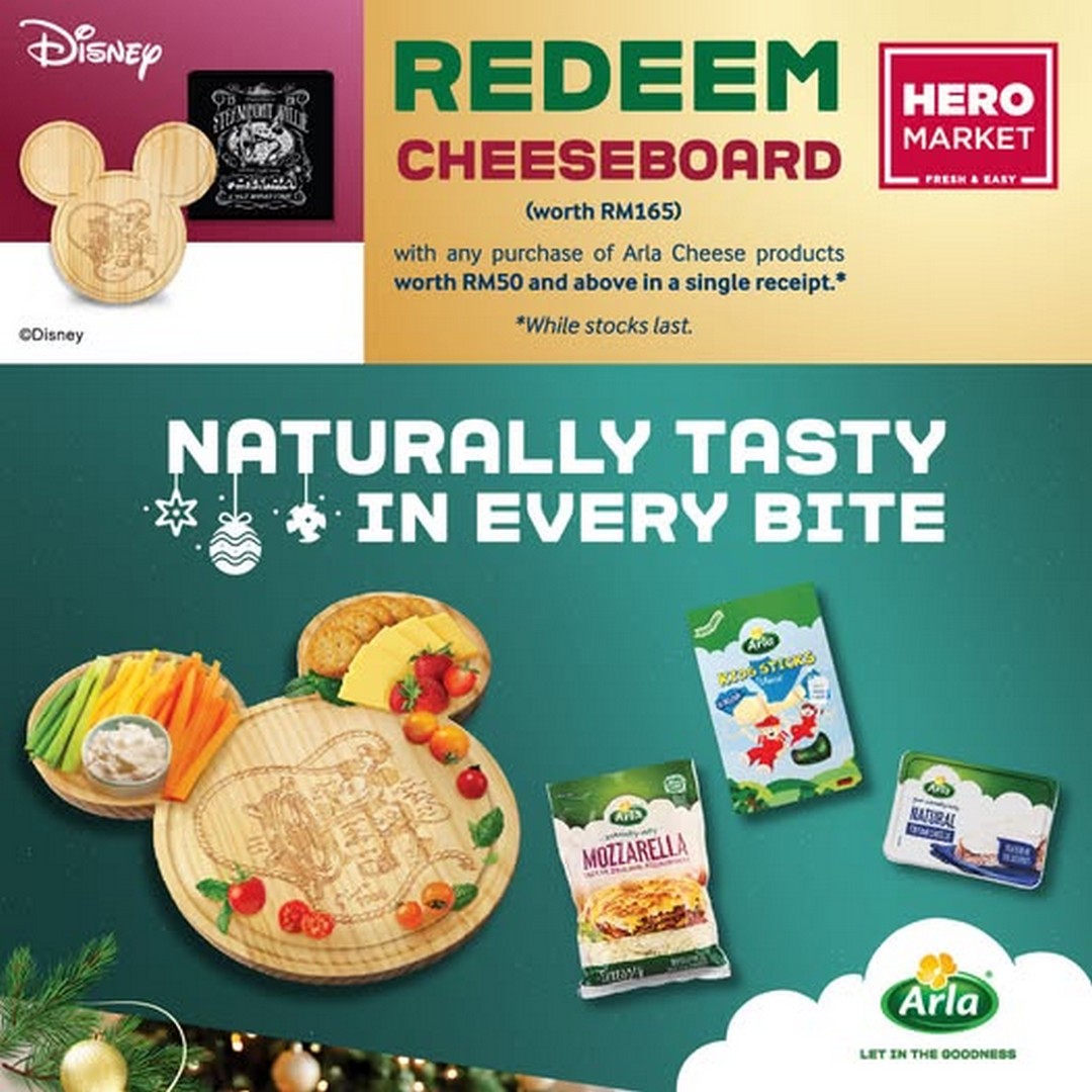 This offer begins on 21 November 2025 onward, and it is available at all nearby HeroMarket branches across Malaysia. For anyone who enjoys dairy products, cheese, butter, milk, or cooking ingredients, Arla is already a familiar name. Their range is usually part of a family’s weekly grocery list, making this reward even more relevant. Unlike many promotions that require customers to spend a high threshold or purchase specific combinations, this one is straightforward: spend RM50 and above on Arla products in a single receipt, and customers become eligible to redeem a free cutting board.