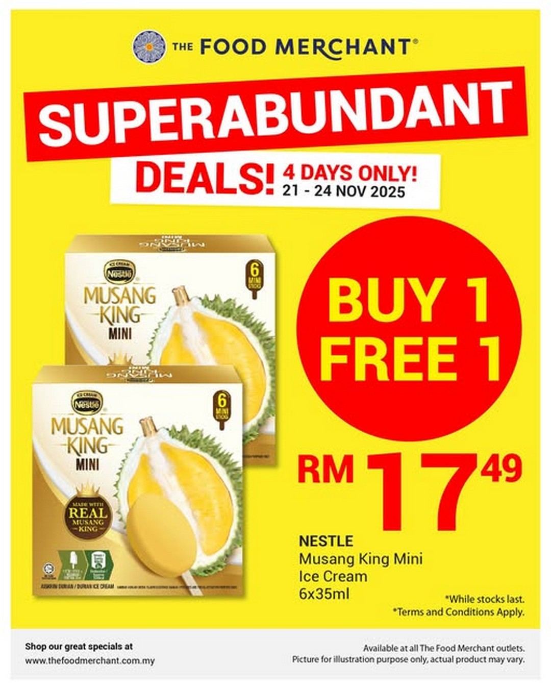 The Food Merchant’s Buy 1 Free 1 promotion on Nestlé Musang King Mini Ice Cream offers genuine value, convenience, and a delightful treat. Whether for gatherings, as a personal dessert, or as part of festive preparations, it is a deal that checks all the right boxes. With four days to enjoy this offer, shoppers have just enough time to plan a trip, explore the store, and bring home a treat that celebrates Malaysia’s most iconic fruit.