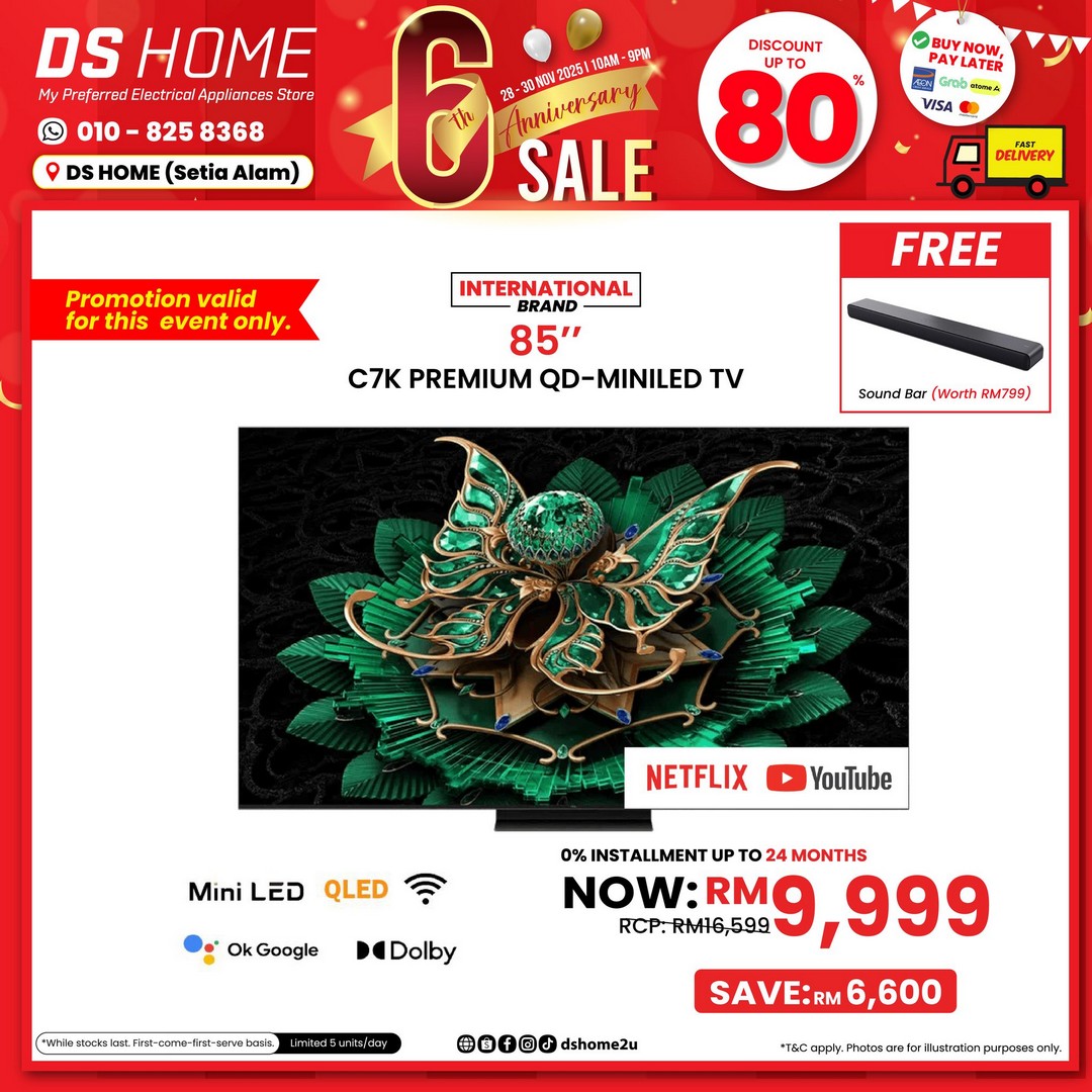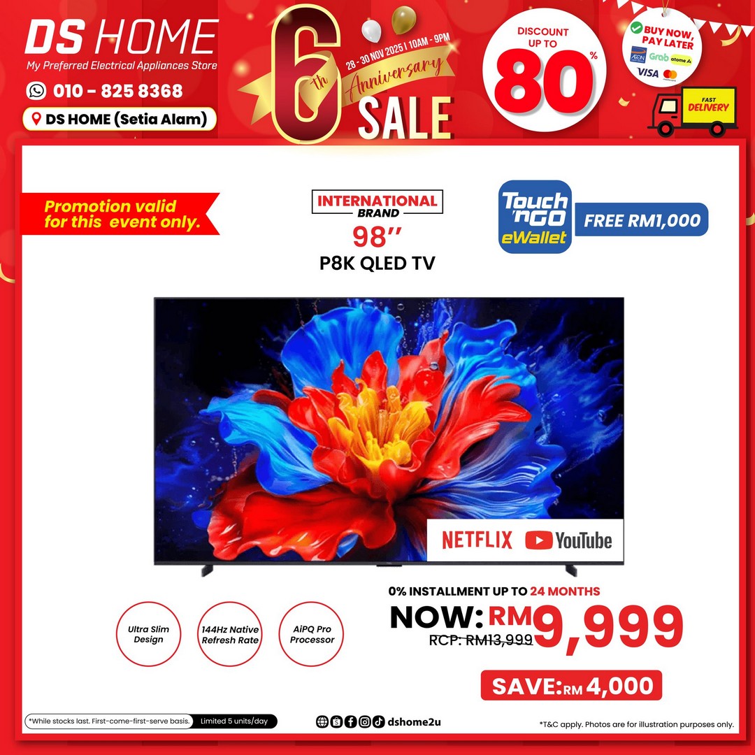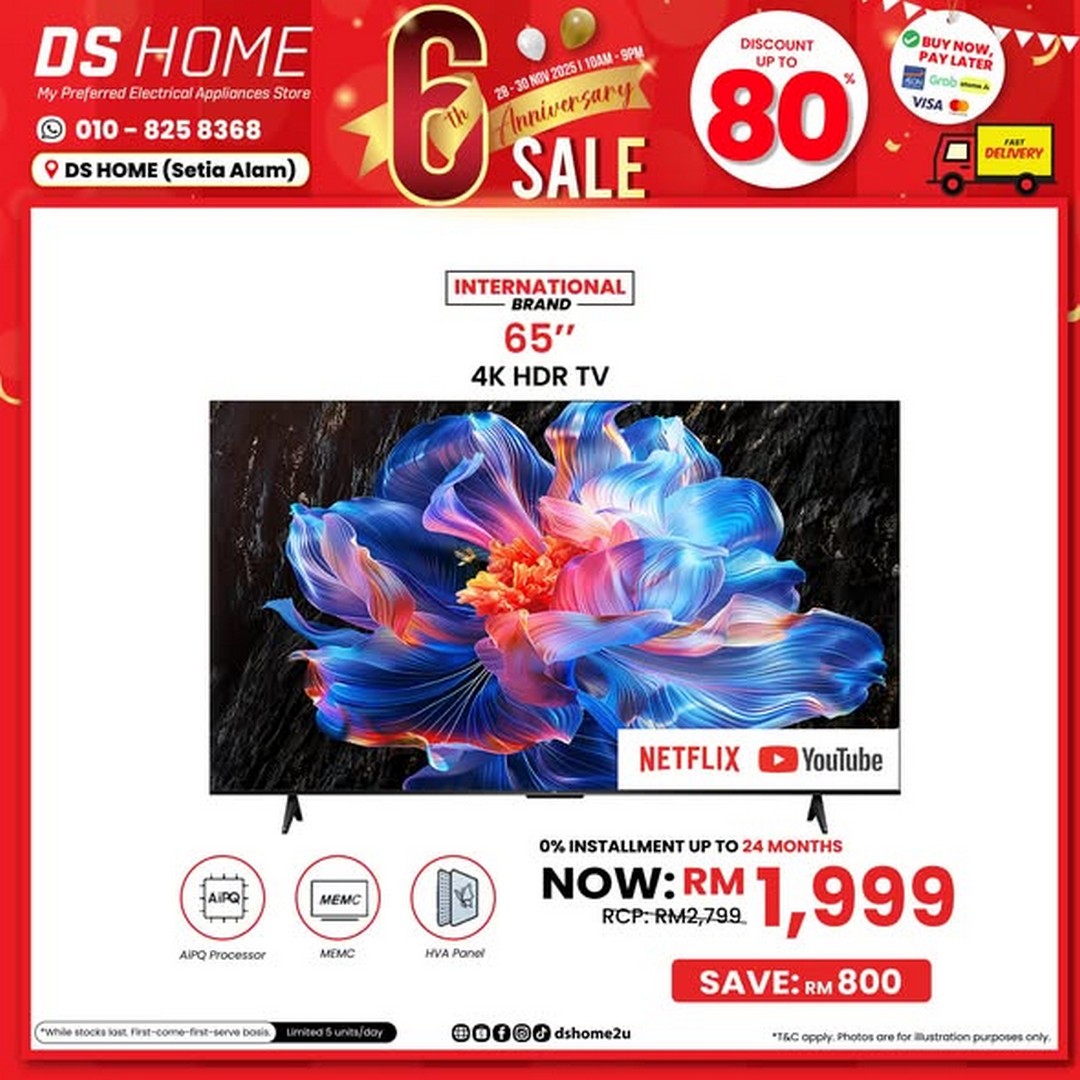 In summary, the DS HOME Setia Alam 6th Anniversary Mega Sale is one of the most significant year-end home appliance events in Shah Alam. Whether someone is shopping for great bargains, exploring their payment plans, or simply wanting to browse through a wide range of options, this sale promises an experience worth joining. With only three days to take advantage of massive savings up to 80 per cent, shoppers are encouraged to plan their visit early and make the most of this rare opportunity before it ends.