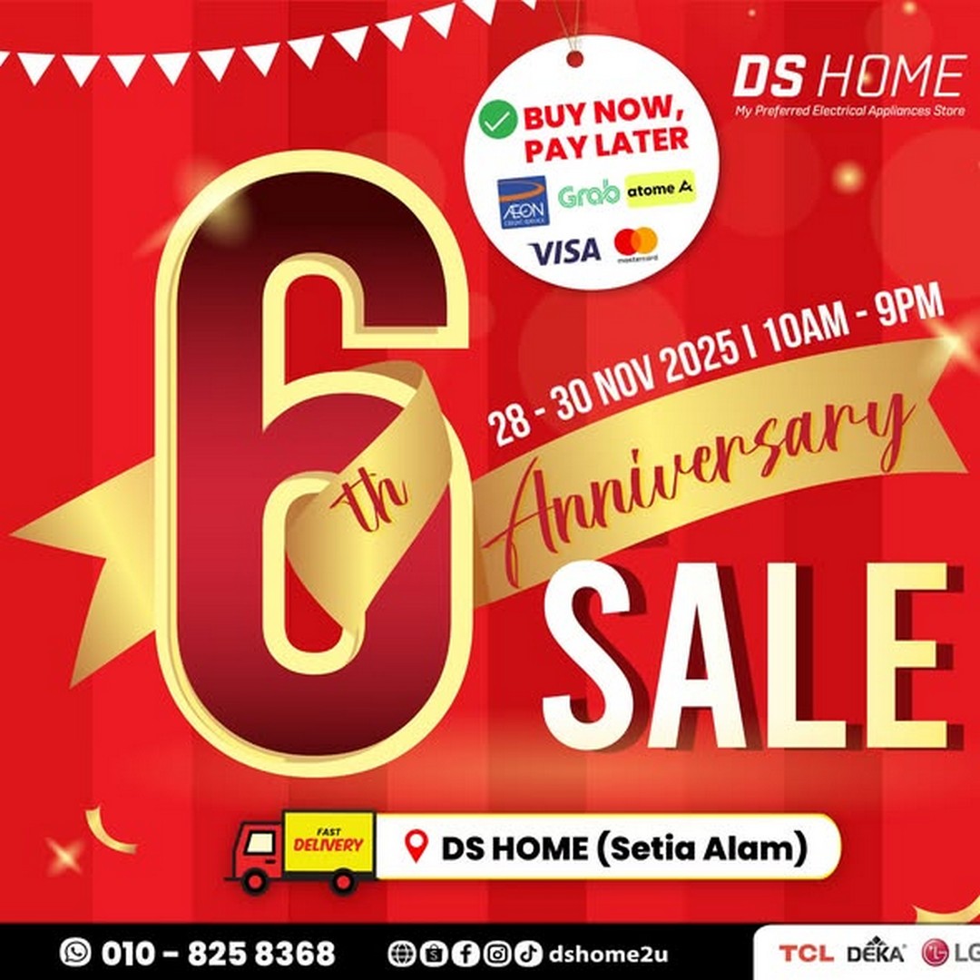 For many households in Malaysia, upgrading the home is a goal that tends to sit somewhere between a dream and a necessity. Over the years, rising prices and increasing living costs often make families feel that a full home makeover is out of reach. Yet, every now and then, a rare opportunity comes along that breaks this barrier entirely. This year’s DS HOME Setia Alam 6th Anniversary Mega Sale is exactly that kind of moment. Running from 28 to 30 November 2025, this once-a-year sale offers Malaysians a chance to refresh their homes with massive savings, impressive instalment plans, and unbeatable deals on everything from kitchen appliances to major household essentials.