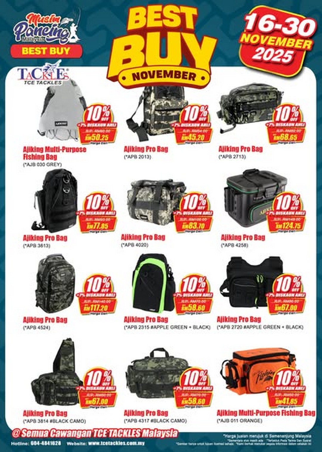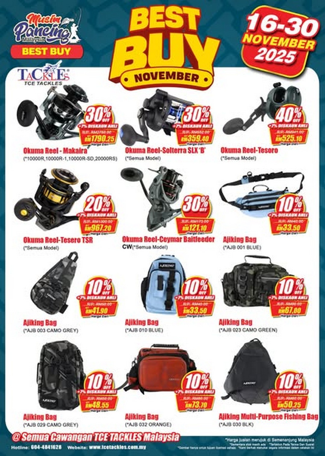 TCE Tackles’ Best Buy November Sale from 16 to 30 November 2025 offers a fantastic opportunity for anglers across Malaysia to enjoy meaningful savings while upgrading or expanding their fishing gear collection. The discounts are substantial, the variety is wide, and the nationwide availability makes it accessible to almost everyone.