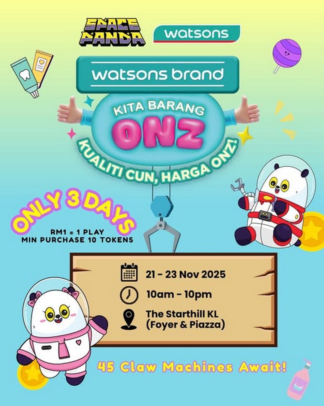 If you’ve ever walked past a claw machine and thought, “I wonder if I can actually win something cool this time,” then here’s your perfect opportunity. Space Panda Malaysia is joining forces with Watsons to bring a fun and unique shopping experience that goes far beyond the usual retail trip. Forget the usual snacks and plush toys; this time, the claw machines are packed with an array of Watsons products, and it’s happening right at the heart of Kuala Lumpur at The Starhill KL.