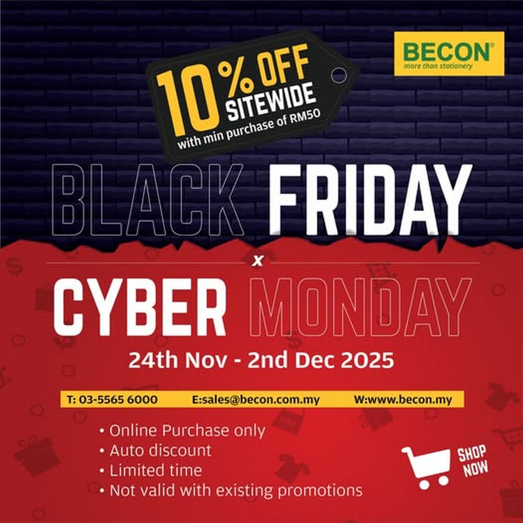 Every year, Malaysians look forward to the long list of Black Friday and Cyber Monday deals that pop up towards the end of November. It is that time when smart shoppers quietly prepare their wish lists, compare prices, and wait for the perfect moment to tap that checkout button. While many people immediately think of gadgets, fashion, or travel deals during this period, stationery lovers also have a reason to get excited this year. Becon Stationery is rolling out their Black Friday x Cyber Monday Mega Sale, and it is one of those promotions that reward early planners, office workers, teachers, students, crafters, and anyone hunting for value-for-money supplies.