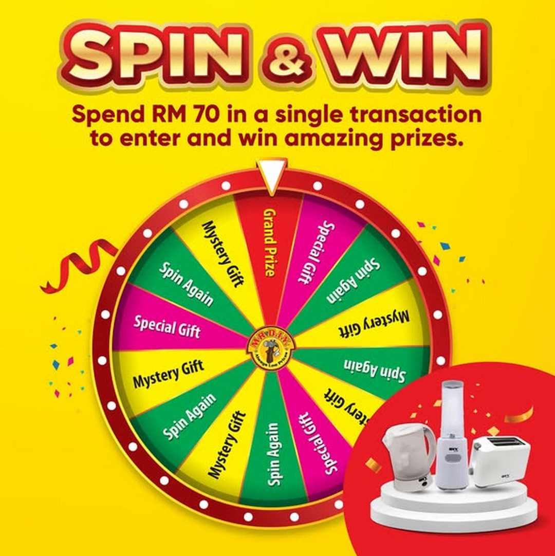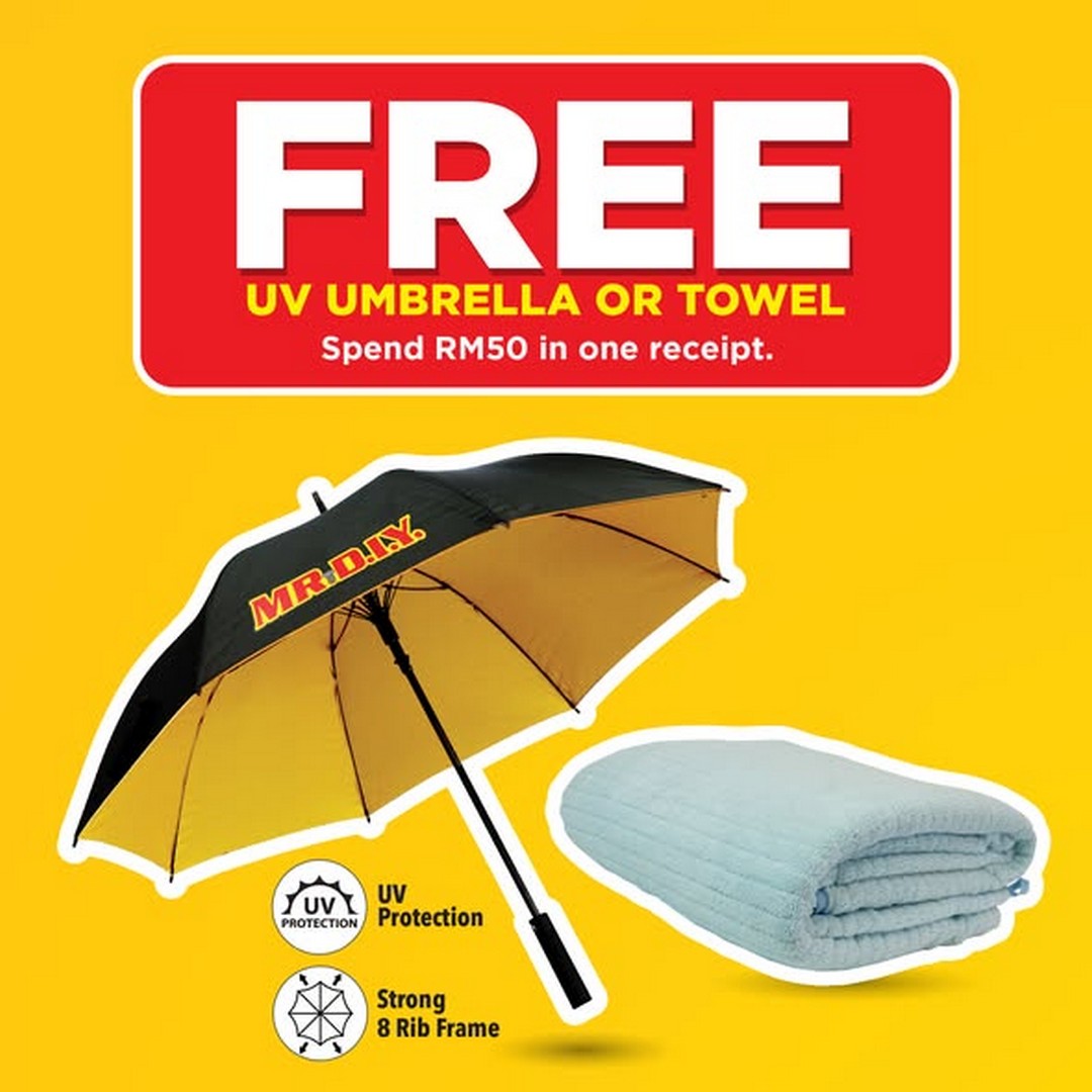 Promotion: Spend RM50 and get a free UV umbrella or towel; spend RM70 and participate in Spin & Win (same receipt)