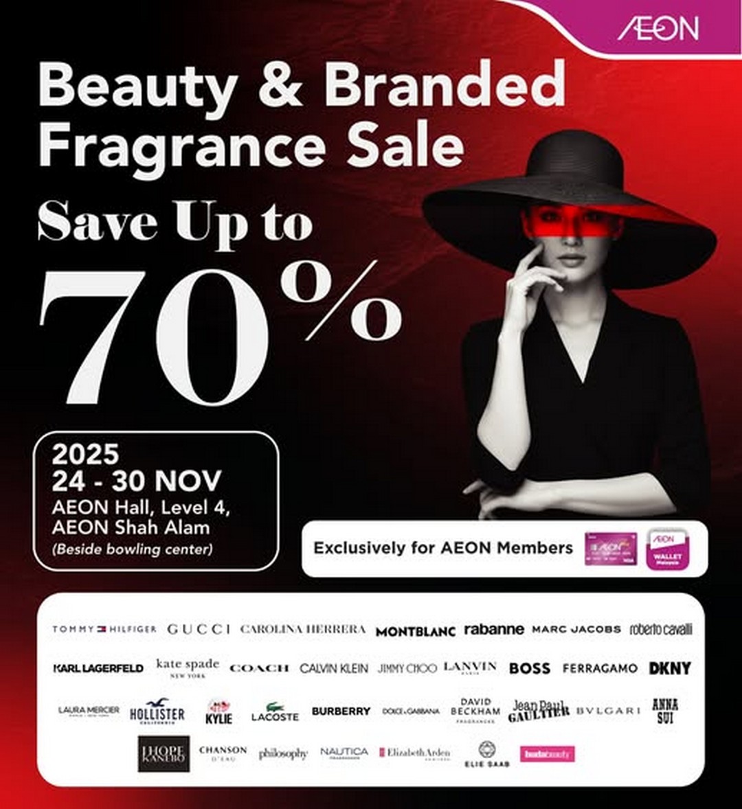 From 24th to 30th November 2025, AEON Shah Alam transforms its Level 4 hall, right beside the bowling centre, into a haven for all things beauty and luxury. Whether they are hunting for a new signature perfume, replenishing skincare favourites, or discovering cult-status makeup, this sale provides the perfect opportunity to indulge in high-quality products at discounted prices of up to 70% off.