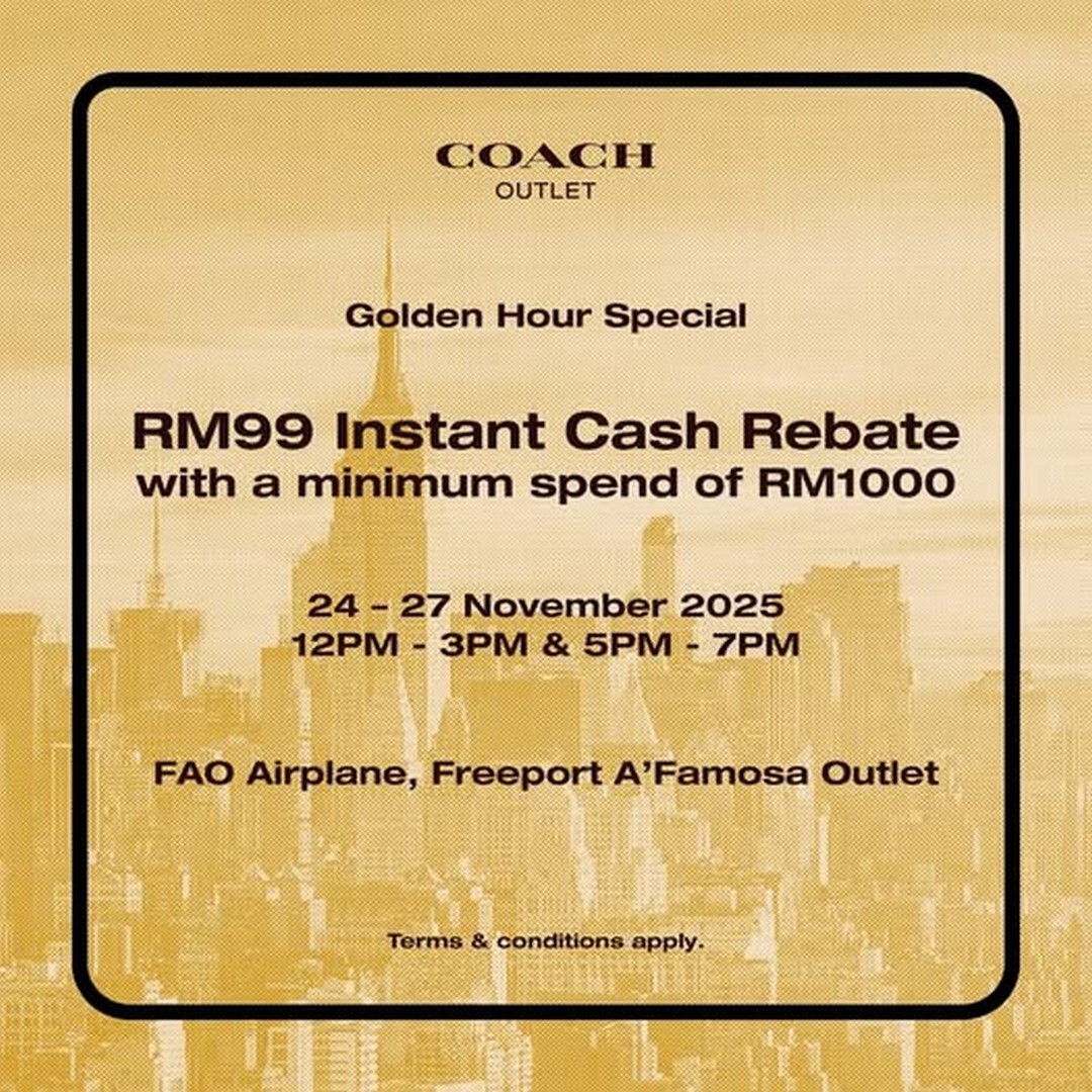 When a brand like Coach announces a limited-time promotion, it tends to create a ripple of excitement among shoppers, especially those who appreciate premium craftsmanship but still want to enjoy value for money. This year, the Coach Outlet Golden Hour Special is making its return at Freeport A’Famosa Outlet, and it is shaping up to be one of the most appealing shopping opportunities for anyone who loves designer goods without the luxury-store price tag. Happening from 24 to 27 November 2025, this short but impactful campaign offers an instant cash rebate that can make a real difference to a shopping budget.