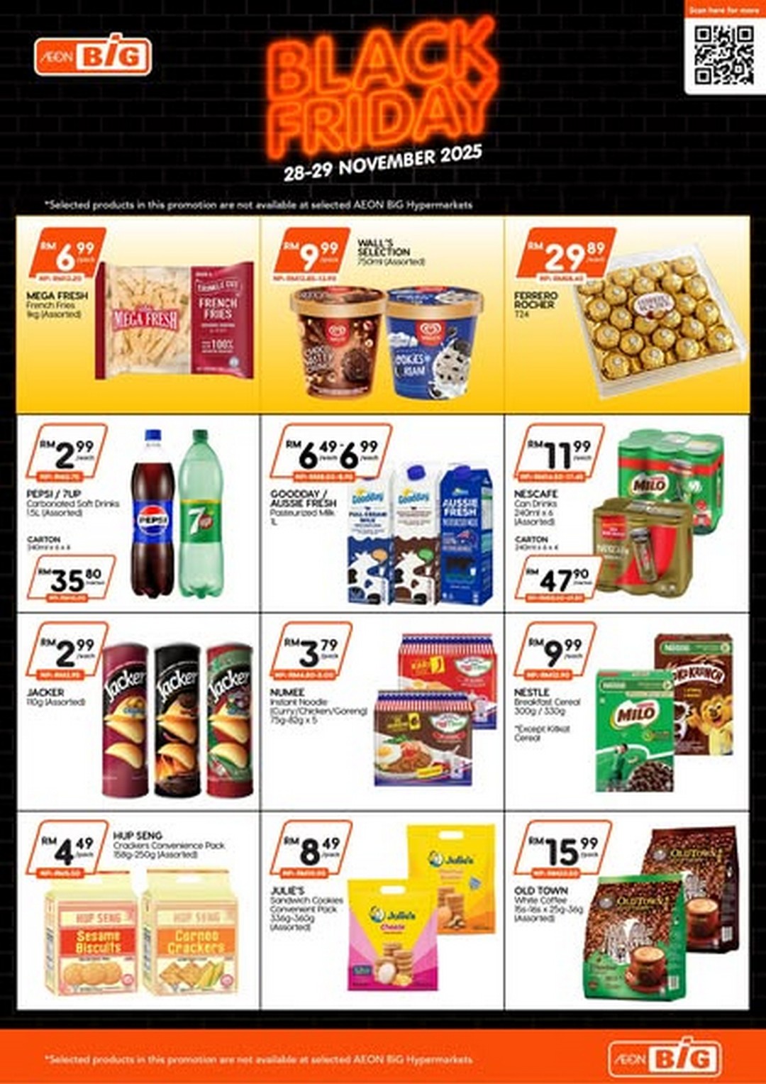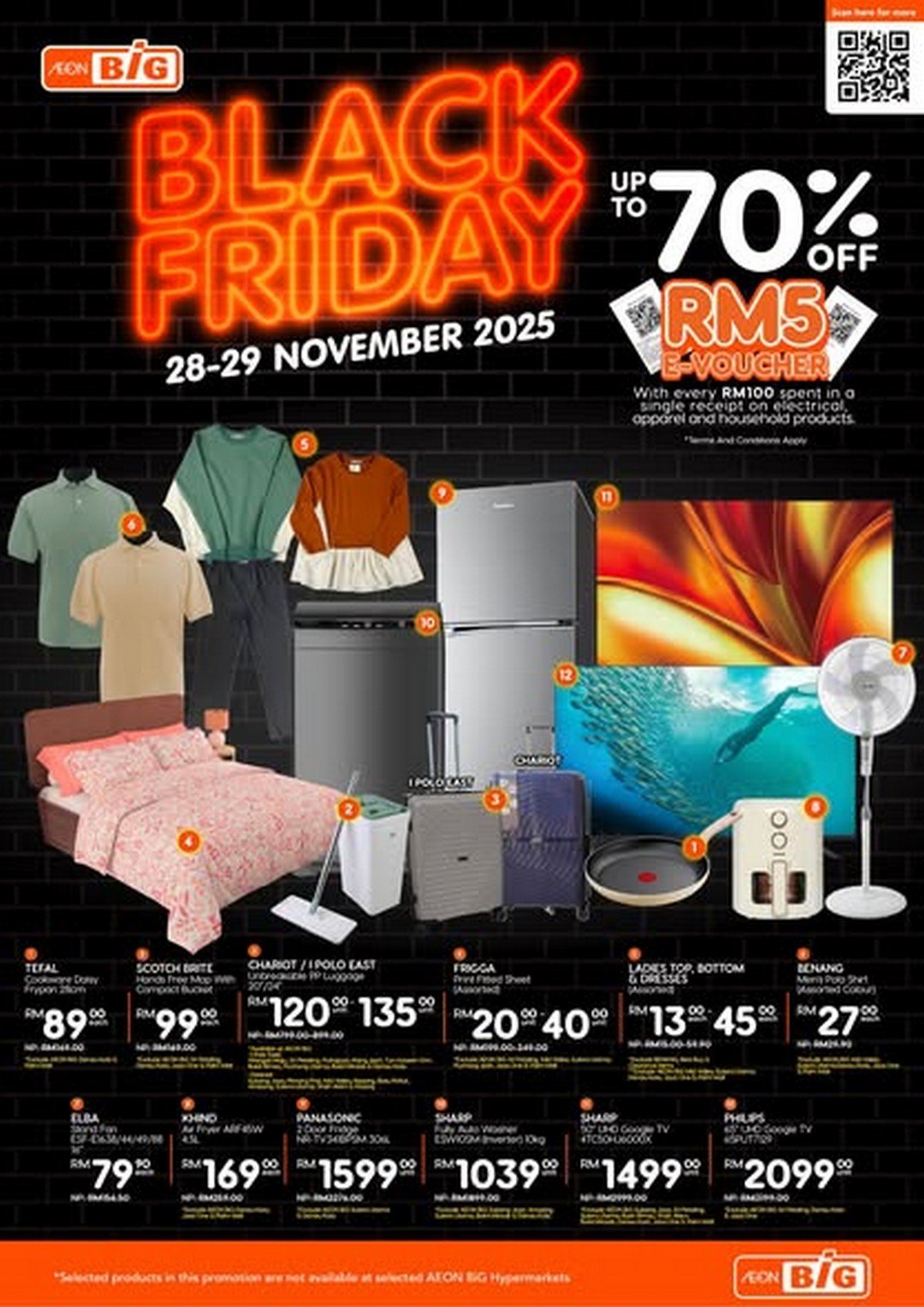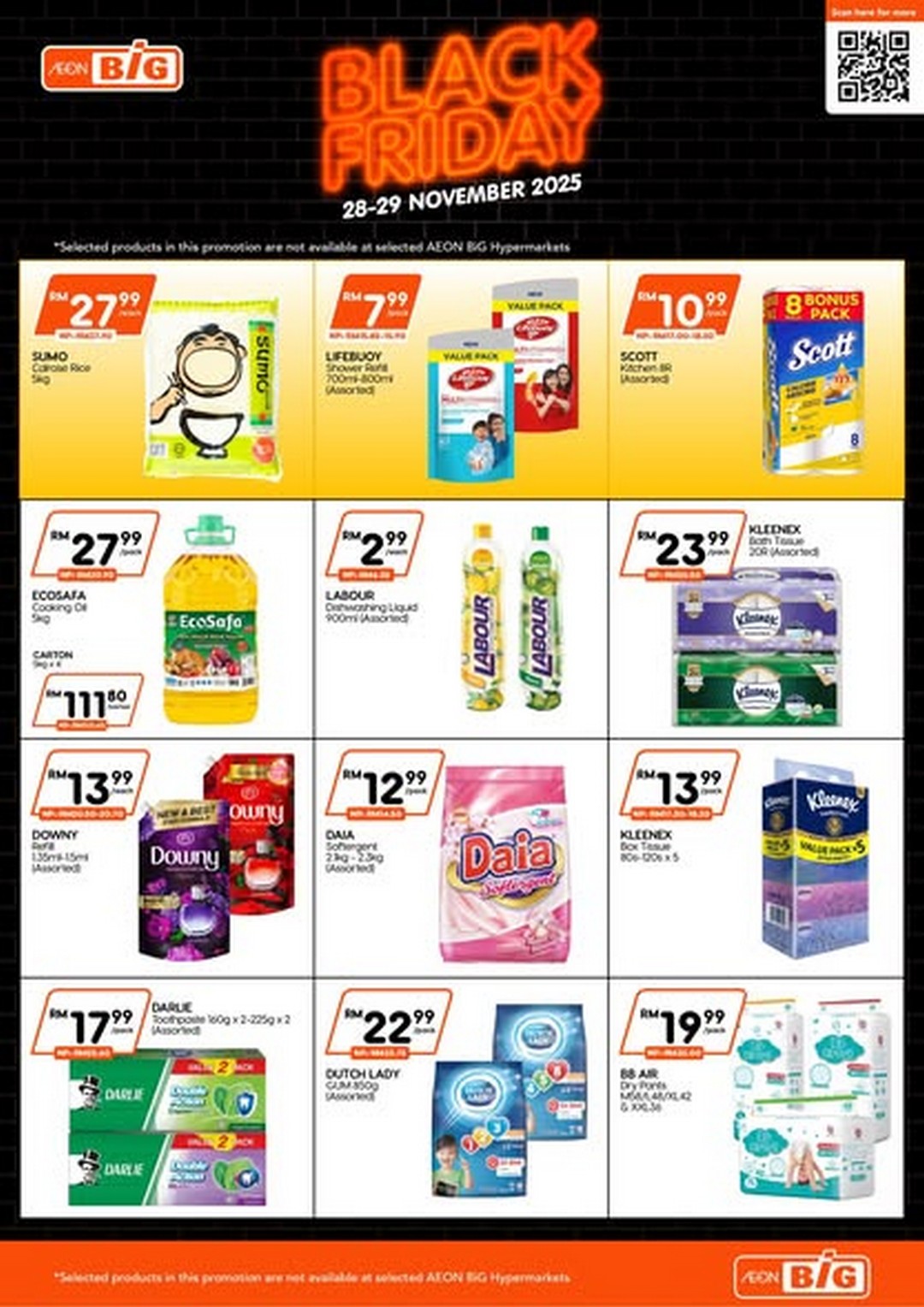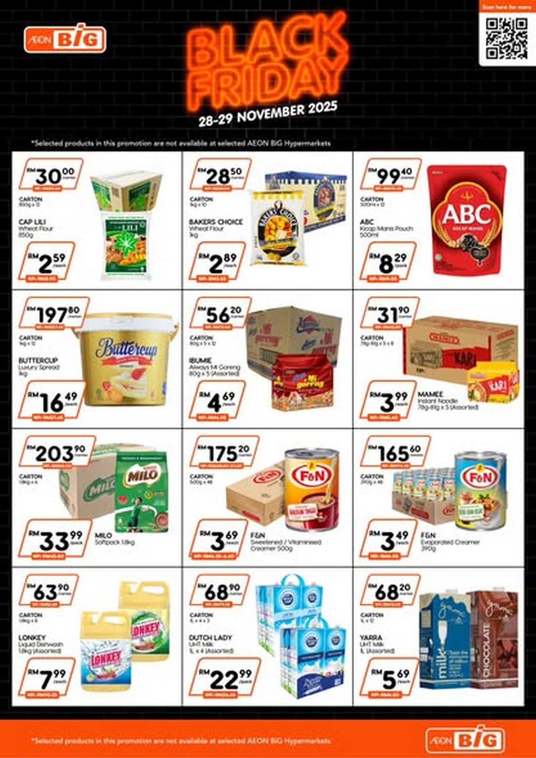 In short, AEON BiG’s Black Friday promotion from 28 to 29 November 2025 is an unmissable event. It provides a perfect blend of convenience, variety, and value, with the added bonus of a RM5 e-Voucher for shoppers spending RM100 in a single receipt. For anyone who loves great bargains, wants to prepare for the festive season early, or simply enjoys the thrill of Black Friday, this is a golden opportunity to shop smart and save.