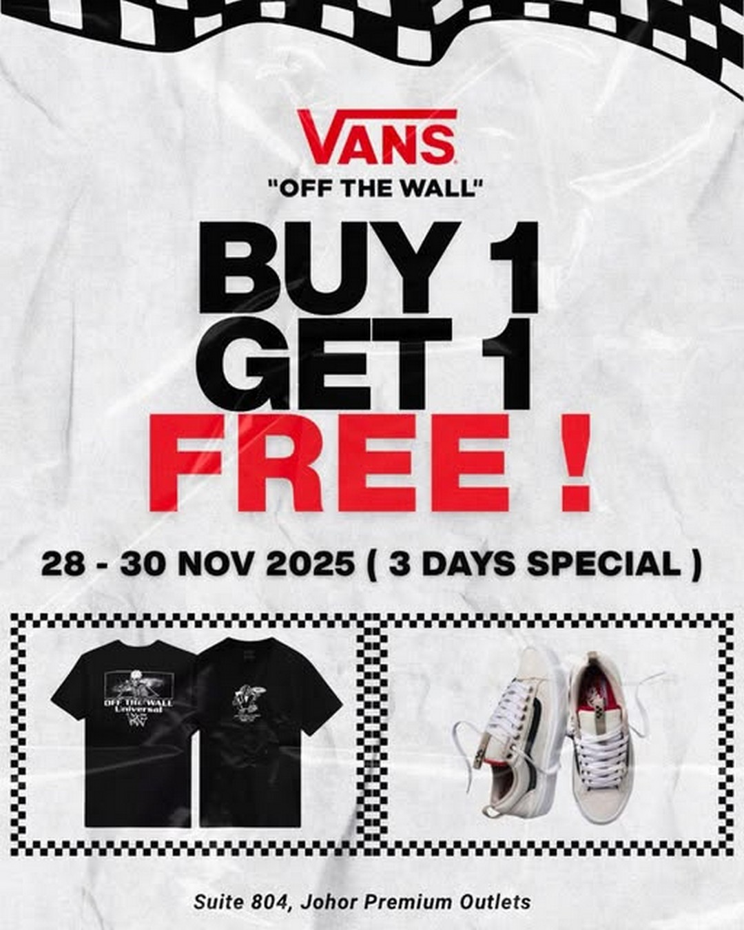 If there is one thing most Malaysians can agree on, it is that a genuinely good deal in fashion does not appear every day, especially when it involves a global brand known for its cult following. So when a well-loved label like Vans® announces a Buy 1 Selected Item, Get 1 Complimentary Selected Item promotion for three full days, it is the sort of news that savvy shoppers, sneaker enthusiasts, streetwear fans, and even casual visitors should not overlook. Taking place from 28 to 30 November 2025 at Johor Premium Outlets (JPO), this limited-time special sale offers a rare chance to enjoy significant value without compromising on quality or style.
