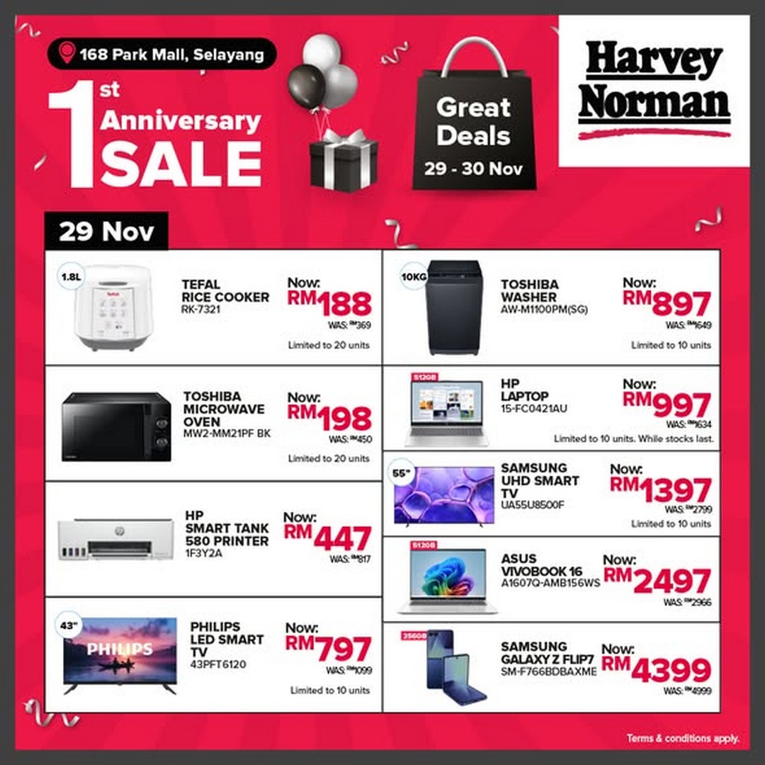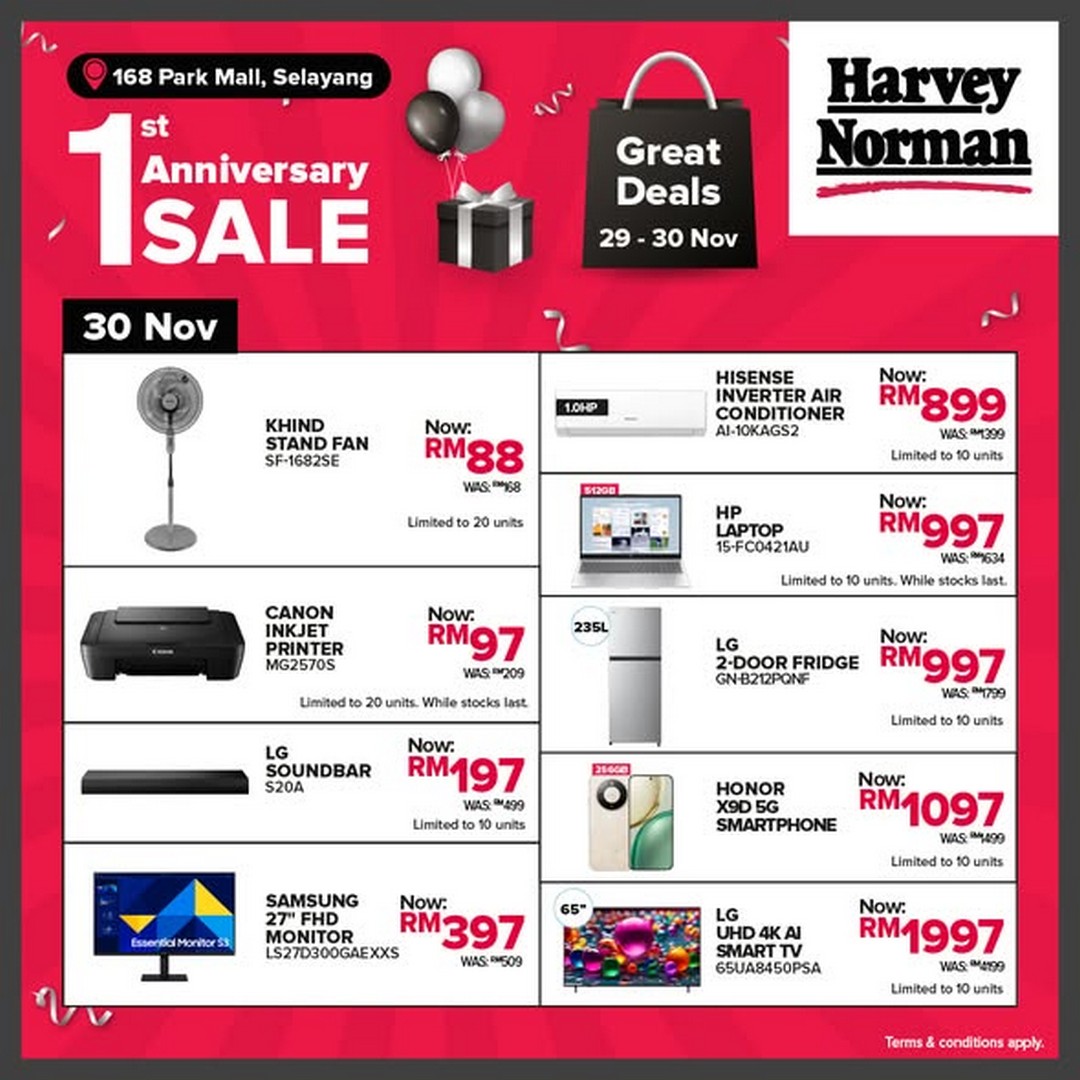 If there is one thing many Malaysians agree on, it is that a good bargain is always worth the trip, especially when it involves essential home appliances, personal tech, and smart devices that make everyday living smoother. For those who have been patiently waiting to upgrade their laptops, replace ageing kitchen appliances, or finally get their hands on a more reliable smartphone without paying full price, there is something worth getting excited about. Harvey Norman Malaysia is celebrating the 1st Anniversary of its 168 Park Mall Selayang outlet with a two-day sale that brings together some of the most compelling deals on Electrical, Computers, and Communication products. Running only on 29 and 30 November 2025, this anniversary event promises massive savings that shoppers genuinely would not want to miss.