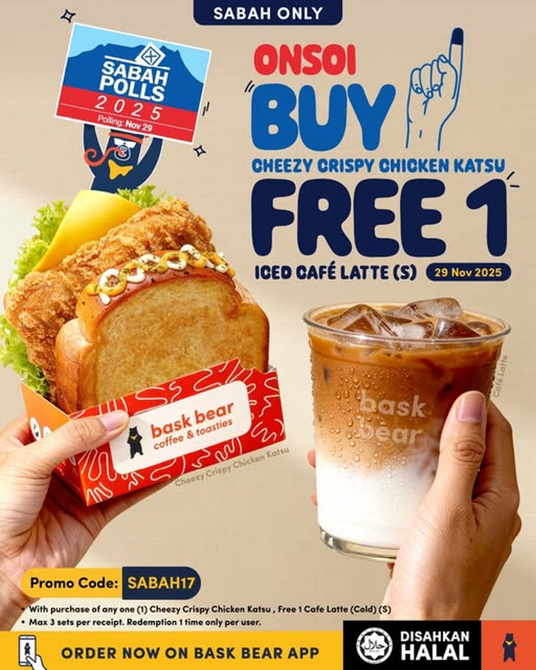 If you happen to be in Sabah on 29 November 2025, this promotion is certainly worth considering. Whether you are heading out to cast your vote, spending time with family, or simply going about your usual weekend routine, a Cheezy Crispy Chicken Katsu paired with a free cold café latte is a delicious way to brighten up your day. Given that this is a one-day-only offer, it might be wise to plan ahead by downloading the Bask Bear Coffee app early, preparing the promo code SABAH17, and identifying the nearest participating outlet.