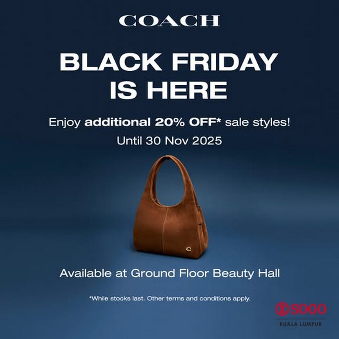 Black Friday has always been a time for shoppers to hunt for the best deals of the year, and this time, SOGO Malaysia is bringing an irresistible offer that is bound to excite fashion enthusiasts. From now until 30 November 2025, shoppers at SOGO Kuala Lumpur can enjoy an extra 20% off on selected COACH clearance items at the Ground Floor Beauty Hall. For those who have been eyeing COACH handbags, wallets, or accessories, this is the perfect opportunity to snag premium items at a fraction of the price.