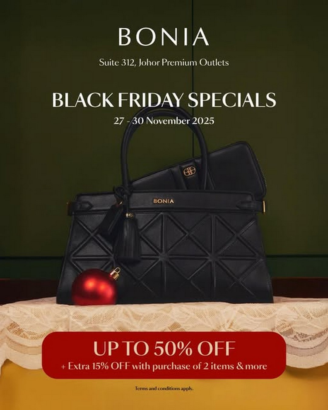 In short, the Bonia Special Sale at Johor Premium Outlets from 27 to 30 November 2025 is an opportunity that fashion-conscious shoppers should not overlook. Whether someone wants to treat themselves, prepare gifts ahead of time, or simply enjoy a nice day out with the chance of discovering a worthwhile bargain, there is plenty to look forward to. The combination of outlet pricing, up to 50 per cent discounts, and an additional 15 per cent savings with the purchase of two selected items creates tremendous value. Anyone who appreciates quality leather goods, thoughtful design, and long-term usability will find this sale especially appealing.