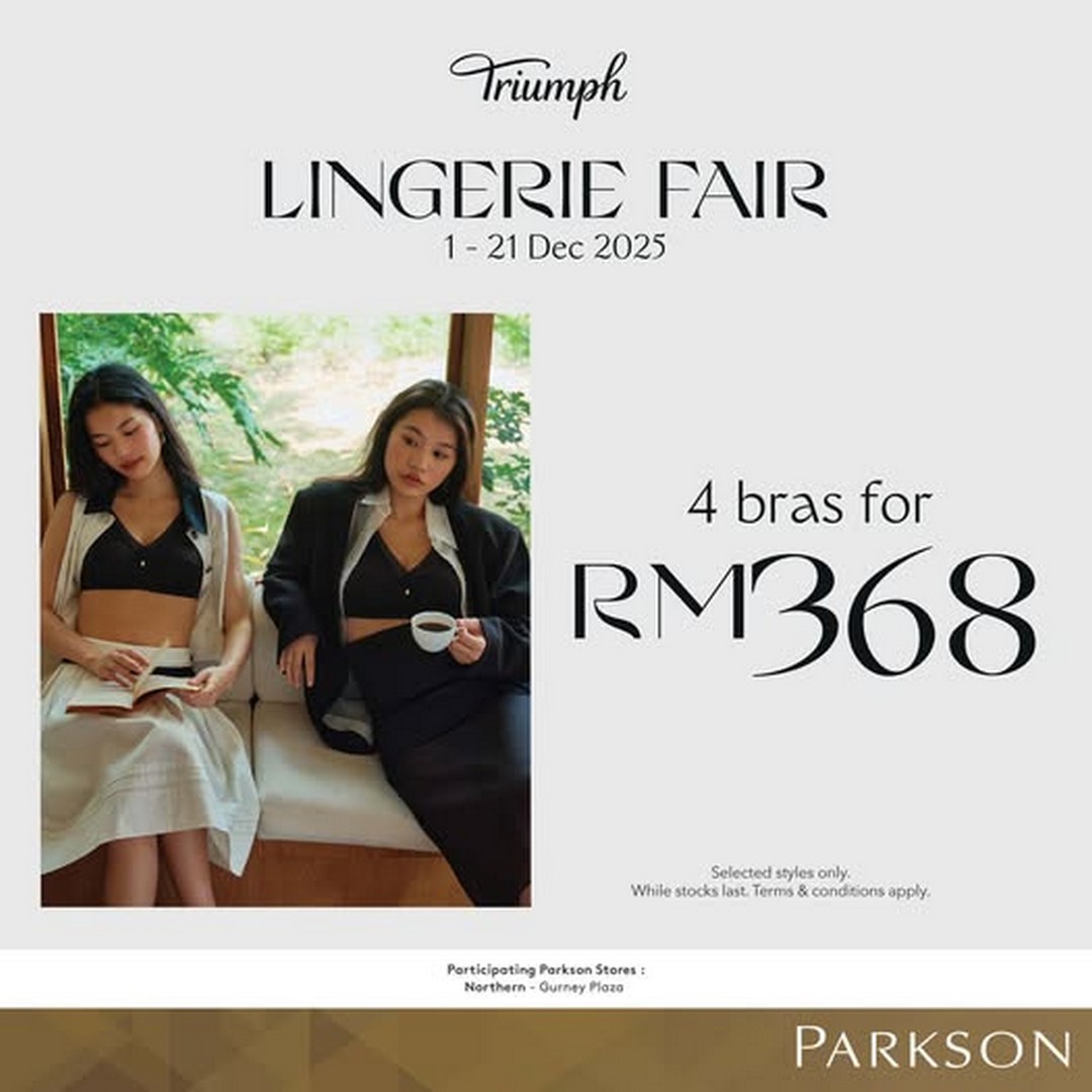 If there is one thing many shoppers often overlook when refreshing their wardrobe, it is the importance of quality lingerie. A well-designed bra changes everything — from comfort and posture to the way outfits look and feel throughout the day. That is why the Triumph Lingerie Fair at Parkson Elite Gurney Plaza is such an exciting opportunity for anyone who appreciates reliable craftsmanship and style when it comes to innerwear. Running from 1 to 21 December 2025, this exclusive promotion allows shoppers to enjoy RM368 off when they purchase any four bras during the fair.