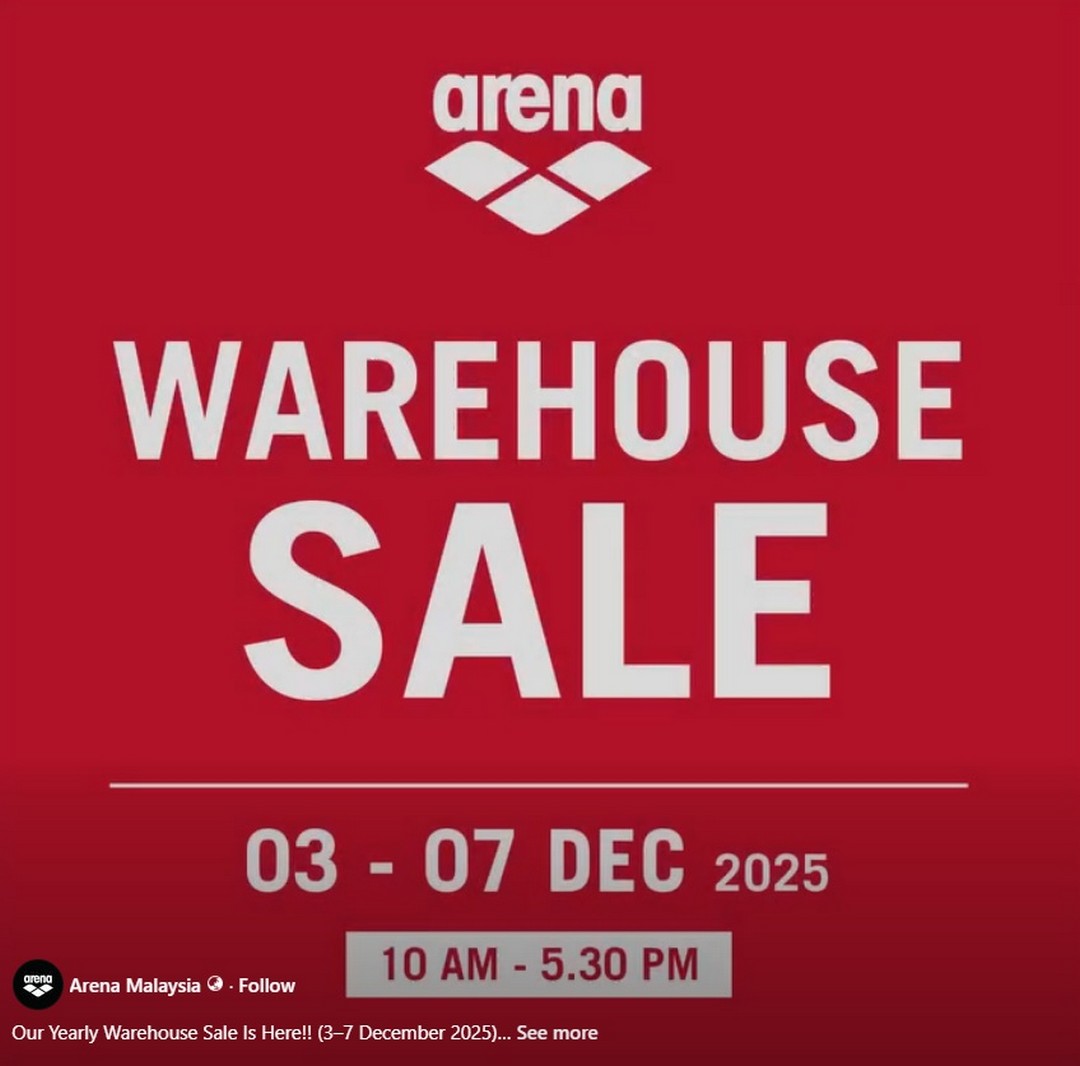 Don’t miss out on this opportunity to explore Arena Malaysia’s premium swimwear collection, interact with expert staff, and walk away with high-quality products at a fraction of the usual cost. Whether it’s for training, leisure, or gifting purposes, this warehouse sale is the perfect way to secure exceptional value while enjoying a fun and engaging shopping experience.