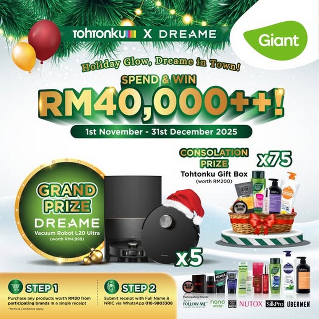 The grand prizes are impressive. Five lucky winners will each receive a Dreame Vacuum Robot L20 Ultra, a high-end smart vacuum worth RM4,999. For those who may not snag the grand prize, there’s still plenty to be excited about. Seventy-five consolation prizes are up for grabs in the form of Tohtonku Gift Boxes, each valued at RM200. It’s an excellent way for shoppers to get rewarded for buying products they already love.