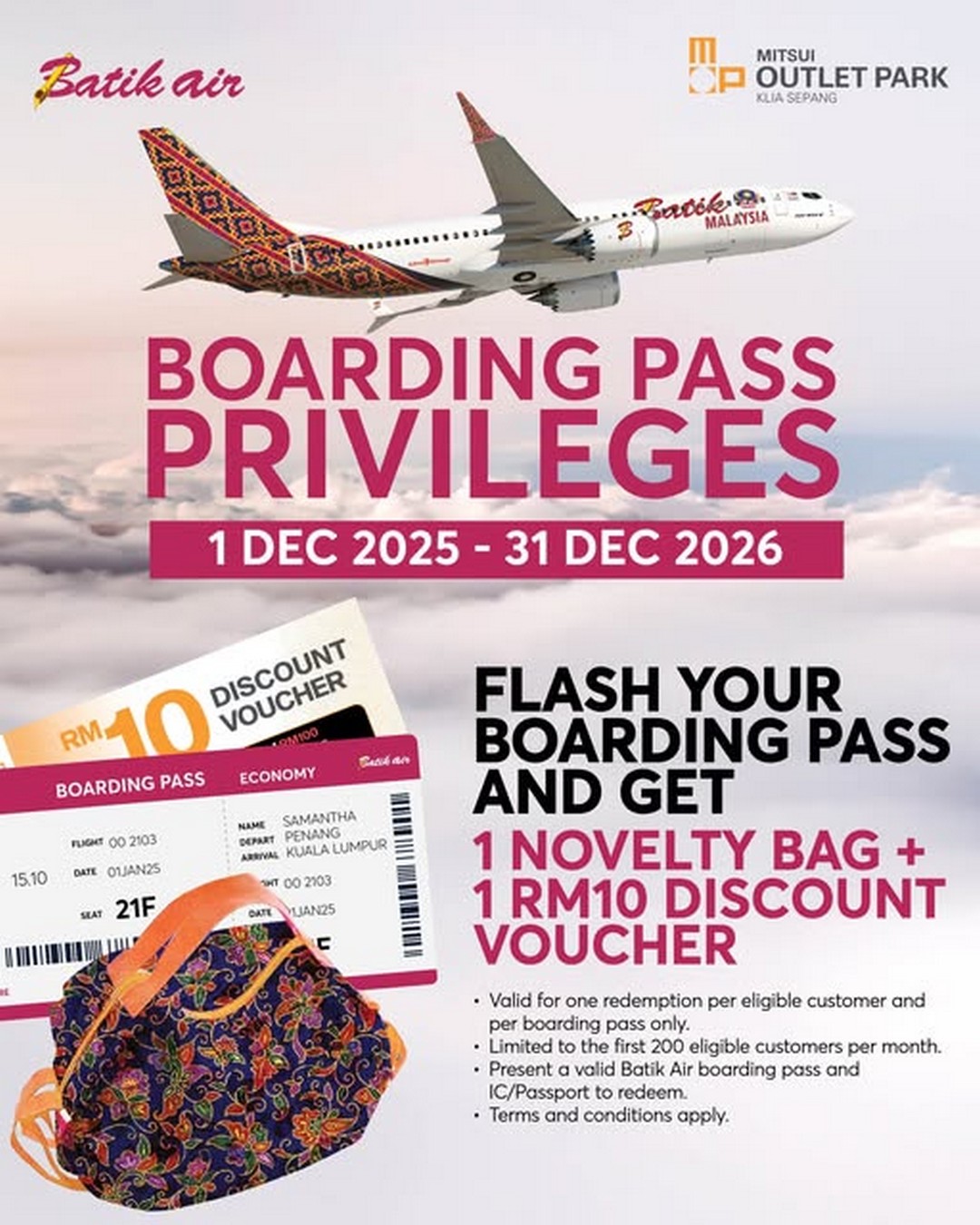 Don’t miss the opportunity to enjoy a free RM10 discount voucher and an exclusive tote bag, which could transform an ordinary trip into a rewarding shopping experience. Plan your next Batik Air flight to coincide with a visit to Mitsui Outlet Park KLIA Sepang and make the most of this exciting year-long promotion.