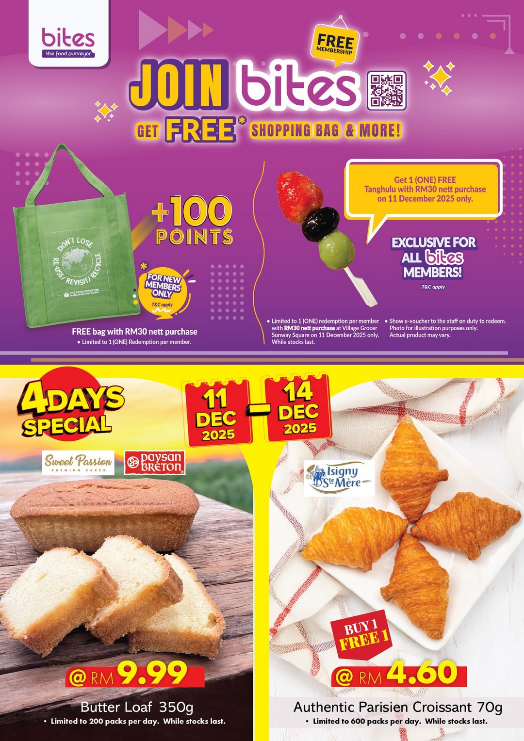 Another reason to attend is the exclusive Bites Membership promotions. New members signing up during the event can enjoy +100 bonus Bites Points instantly, receive a Village Grocer bag with a minimum purchase of RM30 in a single receipt, and even get a Tanghulu treat for purchases of RM30 or more on opening day. The Bites App makes registration quick and easy, allowing shoppers to enjoy instant rewards and access to future e-vouchers for discounts. Membership is free and provides long-term benefits, making this an excellent opportunity to join. Sign up via the app here: Bites App Registration.