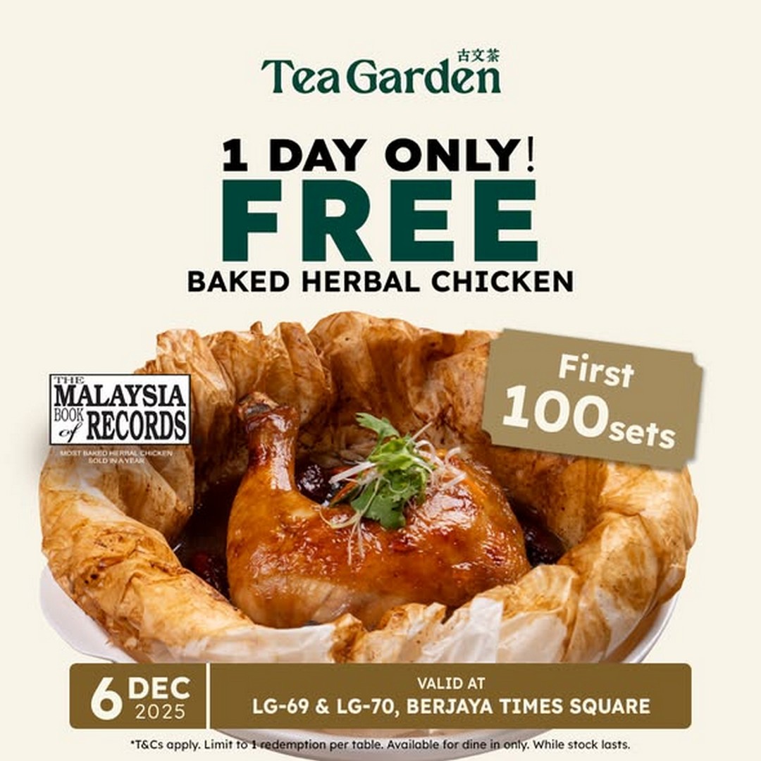 If you enjoy discovering fantastic food deals across Malaysia, especially those that offer something genuinely worthwhile without forcing you to jump through hoops, then Tea Garden’s upcoming grand opening at Berjaya Times Square is something you should not overlook. On 6 December 2025, Tea Garden will be celebrating the launch of their 49th outlet by giving away 100 FREE Baked Herbal Chicken to lucky walk-in customers. Yes, you read that correctly – absolutely free, and with no spending requirement attached as long as you meet the redemption guidelines.