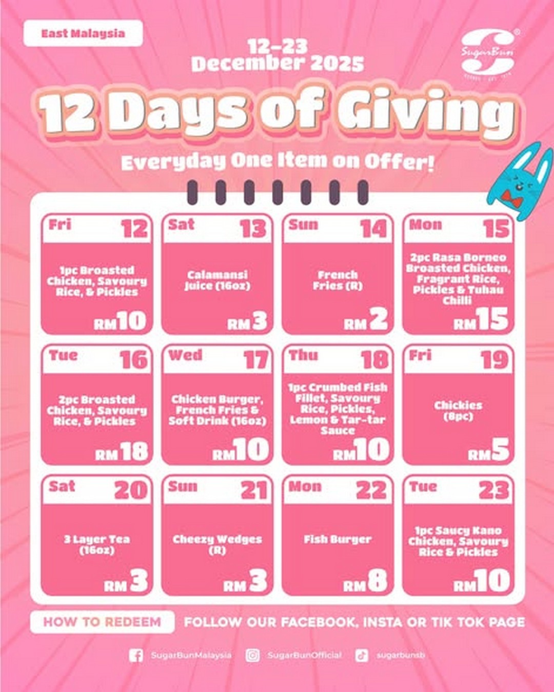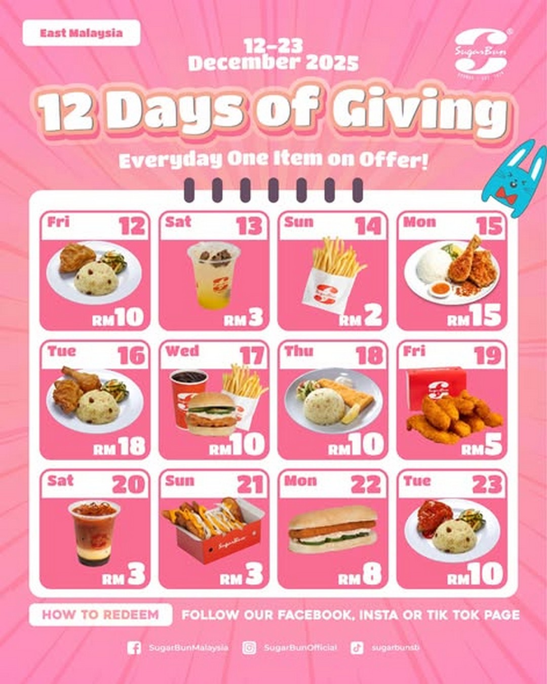 Food lovers, take note! SugarBun Malaysia is bringing an exciting promotion from 12 to 23 December 2025, and it’s shaping up to be a feast you won’t want to miss. If you’ve been craving a reason to gather your friends or family and indulge in some tasty meals, this is it. For 12 consecutive days, SugarBun is rolling out daily meal deals, offering a perfect chance to enjoy your favourite dishes at special prices.