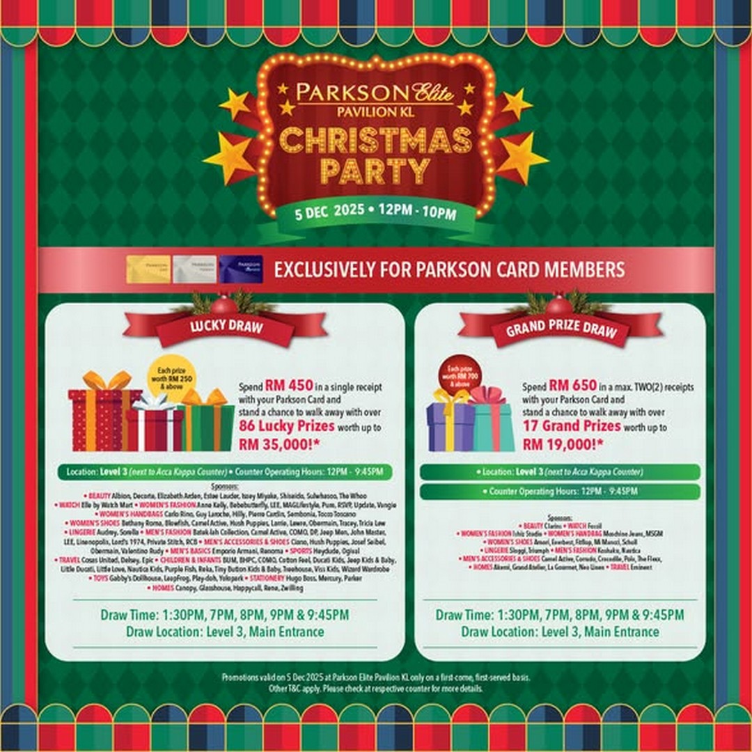 Every December, Kuala Lumpur transforms into a warm and festive city filled with lights, music and cheerful gatherings. Among the many holiday happenings, one event that shoppers look forward to each year is the Parkson Elite Pavilion KL Christmas Party. This annual celebration has become something of a tradition for many families and retail enthusiasts, especially those who enjoy discovering special deals, festive activities and exclusive seasonal rewards. For 2025, the event is returning on Friday, 5 December, and it promises to be even more delightful with a full day of perks, surprises and entertainment for visitors of all ages.