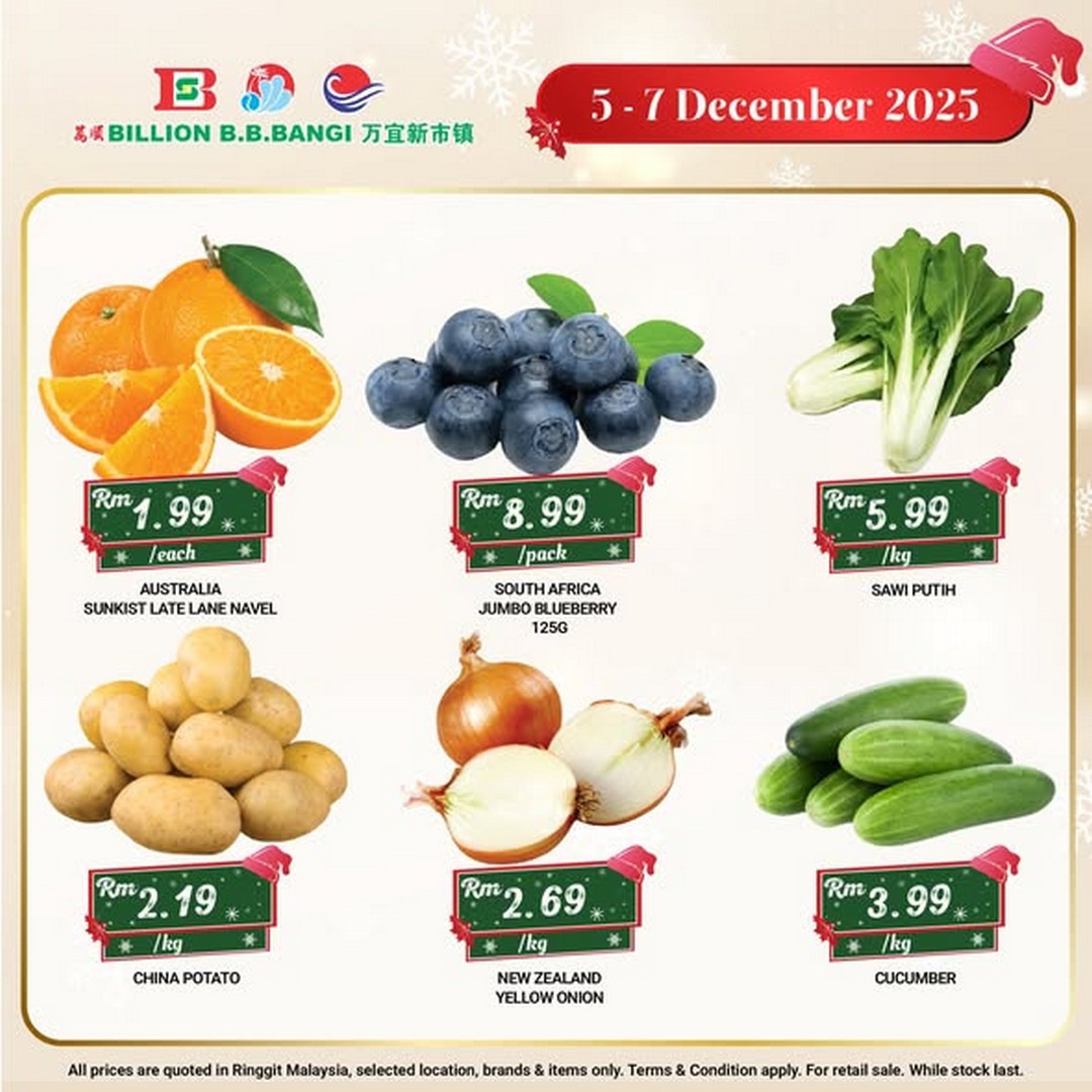 As the festive season approaches, there’s no better time to get your home ready for Christmas feasts, and Billion Malaysia at B.B. Bangi has lined up some irresistible deals to help them do just that. From 5 to 7 December 2025, shoppers can take advantage of a carefully curated selection of fresh produce, premium meats, and seasonal goodies that promise to elevate any Christmas table — all without stretching their wallet.