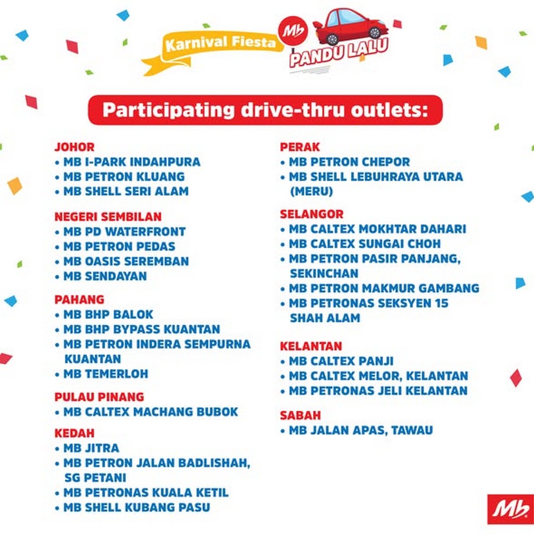 For full details and list of participating Drive-Thru outlets, refer to the official source provided below.