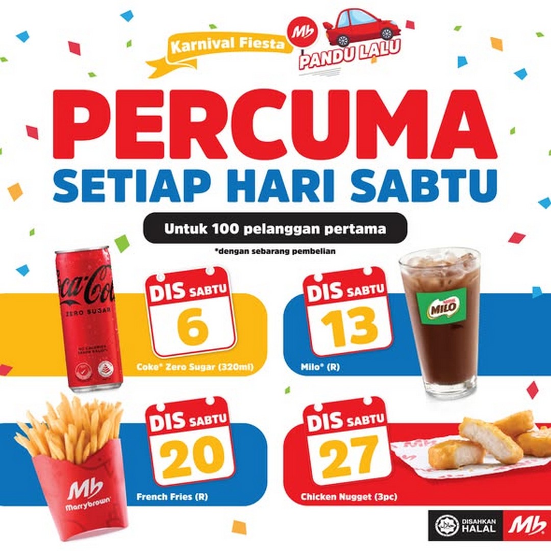 Marrybrown has lined up a series of freebies, each allocated to the first 100 customers who make a purchase through their Drive-Thru lanes on specific Saturdays. The offer runs from 6 to 27 December 2025, and each weekend brings its own complimentary item. What makes this promotion even more appealing is that the freebies are familiar favourites that most Malaysians already enjoy, whether it is the bubbly crispness of a Coke Zero or the classic comfort of a warm Milo.