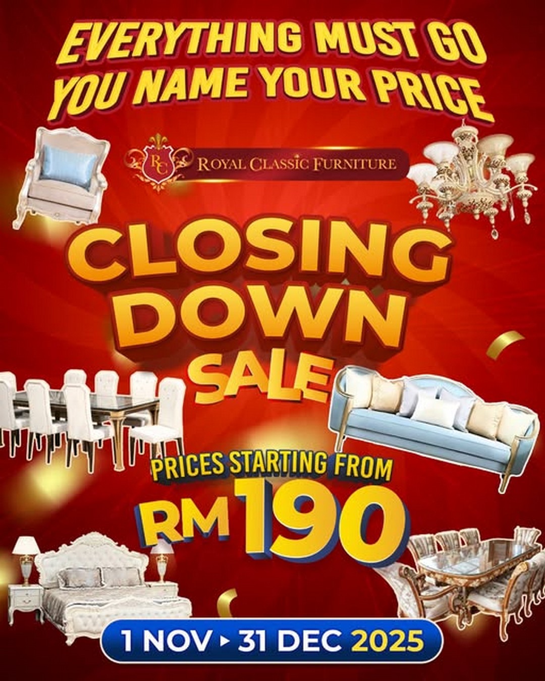 For over two decades, Royal Classic Furniture Malaysia has been a household name for stylish and quality furniture, winning the hearts of many since 2003. Their presence in Dunia Perabot has left a lasting impression on Malaysians looking to furnish their homes with elegance and comfort. However, after 23 remarkable years, the brand has announced that it will officially retire on 31 December 2025. To mark the end of an era, Royal Classic Furniture is hosting a spectacular Grand Closing Sale, offering an unmissable opportunity for furniture enthusiasts and homeowners to snag premium pieces at incredibly low prices.