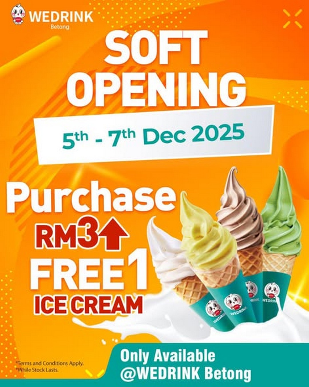 In conclusion, the WEDRINK Betong soft opening is more than just a promotion—it’s an experience. For only RM3, customers receive a free ice cream, enjoy the lively atmosphere of a new outlet launch, and get to support a growing local business. Whether you’re in Betong or nearby, taking part in this event is a fun, affordable, and rewarding way to spend the first weekend of December. Don’t miss out on the opportunity to treat yourself, gather friends, and be part of this exciting celebration.