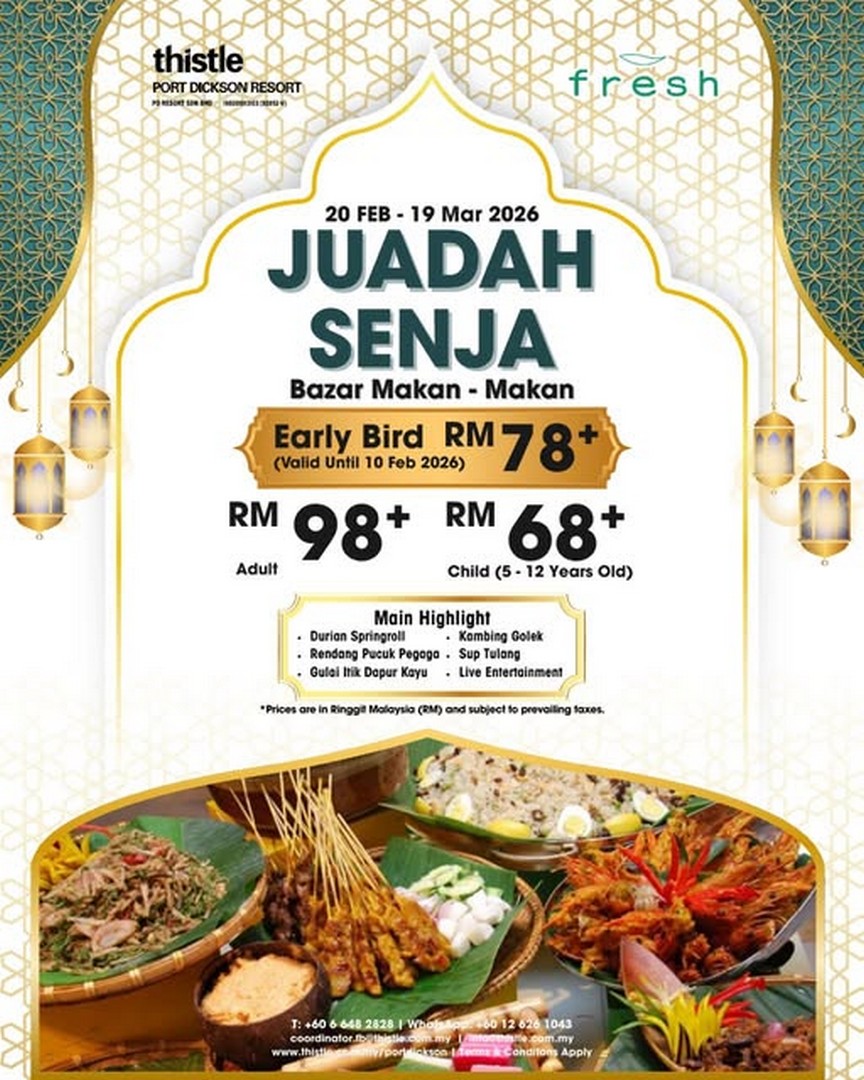 Thistle Port Dickson Resort’s Early Bird Special is more than just a promotion—it’s an invitation to celebrate Ramadan in style. It combines affordability, convenience, outstanding cuisine, and an idyllic setting to create an experience that is truly worth savouring. Whether you are planning a family gathering, a meet-up with friends, or simply want to treat yourself, this buffet provides everything you need for a memorable celebration.