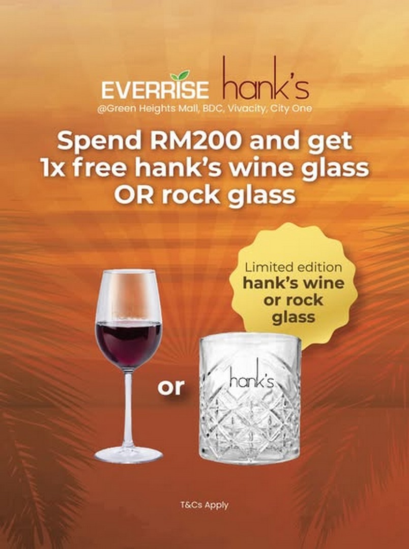 First up, there’s an enticing offer for wine lovers. Shoppers who spend RM200 at Hank’s will receive a complimentary limited edition wine or rock glass. These aren’t just any glasses—they add a refined touch to any home bar and are a perfect way to elevate your wine-drinking experience. Imagine hosting a small gathering and presenting your guests with elegant glasses that make every sip feel luxurious. This deal isn’t just about a free gift; it’s about making your wine moments more special and memorable.