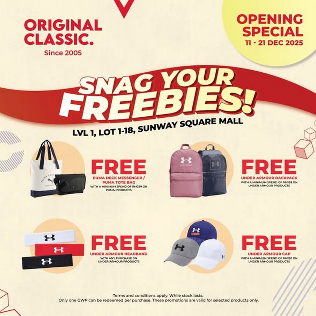 But the excitement does not stop at discounts. Shoppers will also receive exclusive freebies featuring popular brands such as Under Armour and Puma. These gifts with purchase (GWP) offer additional value, making each trip to the store feel like a mini celebration. Who doesn’t love a little extra, especially when it’s a brand-name item? In addition, Original Classic is giving away exclusive sticker packs, adding a fun and collectible element for younger shoppers or those who enjoy quirky additions to their belongings.
