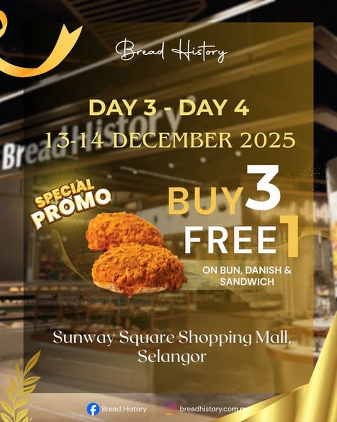 Day 3 & 4 (13–14 December 2025): Buy 3, FREE 1 on Buns, Danishes & Sandwiches